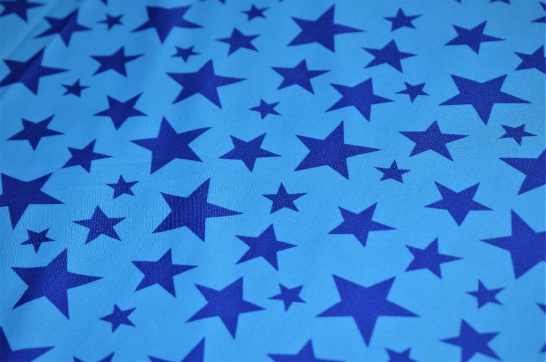 Printed Blue Stars Lycra Spandex Stretch All Way Stretch Costume Material Dress Dance, 150 cm Wide, High Quality