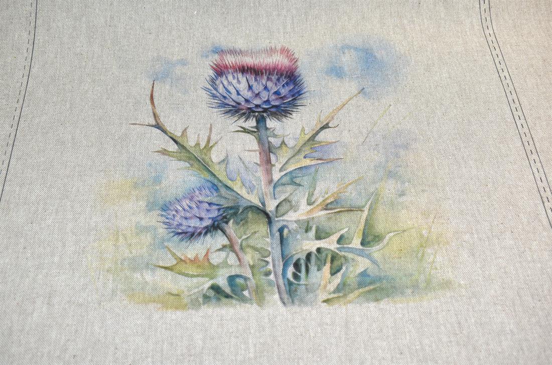 Purple Thistle Panels - Printed Digital Canvas Fabric, Cotton Rich Linen Look, Panels 80% Cotton and 20% Polyester,