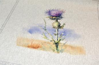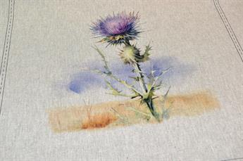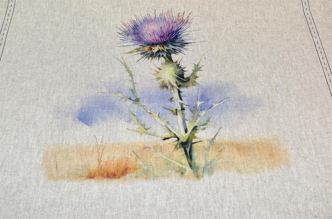 Purple Thistle Panels - Printed Digital Canvas Fabric, Cotton Rich Linen Look, Panels 80% Cotton and 20% Polyester,