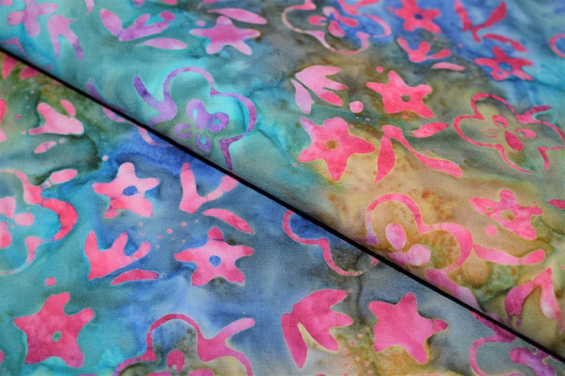 Lovely Printed 100% Bali Batik Tie Dye Patterns Fabric, Floral & Leaves Print, 112cm Wide, High Quality; 5 Colours, Ideal for sewing clothes, quilting, patchwork, cushion-covers, and much more.