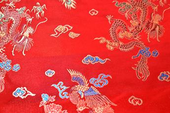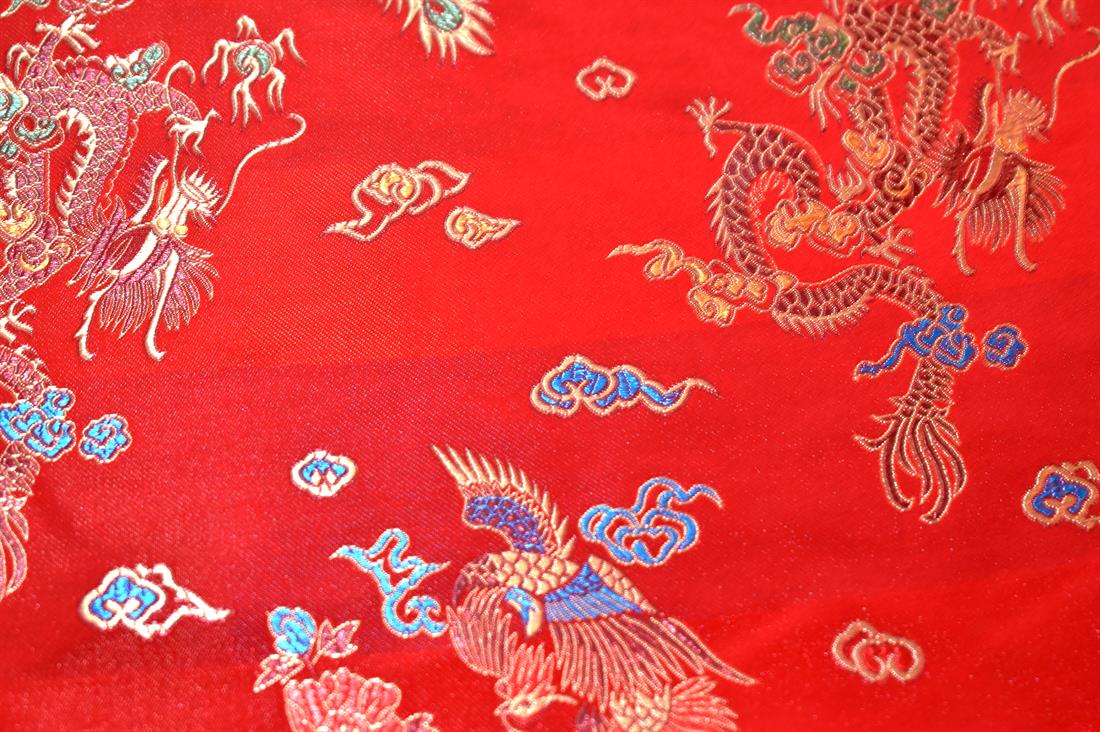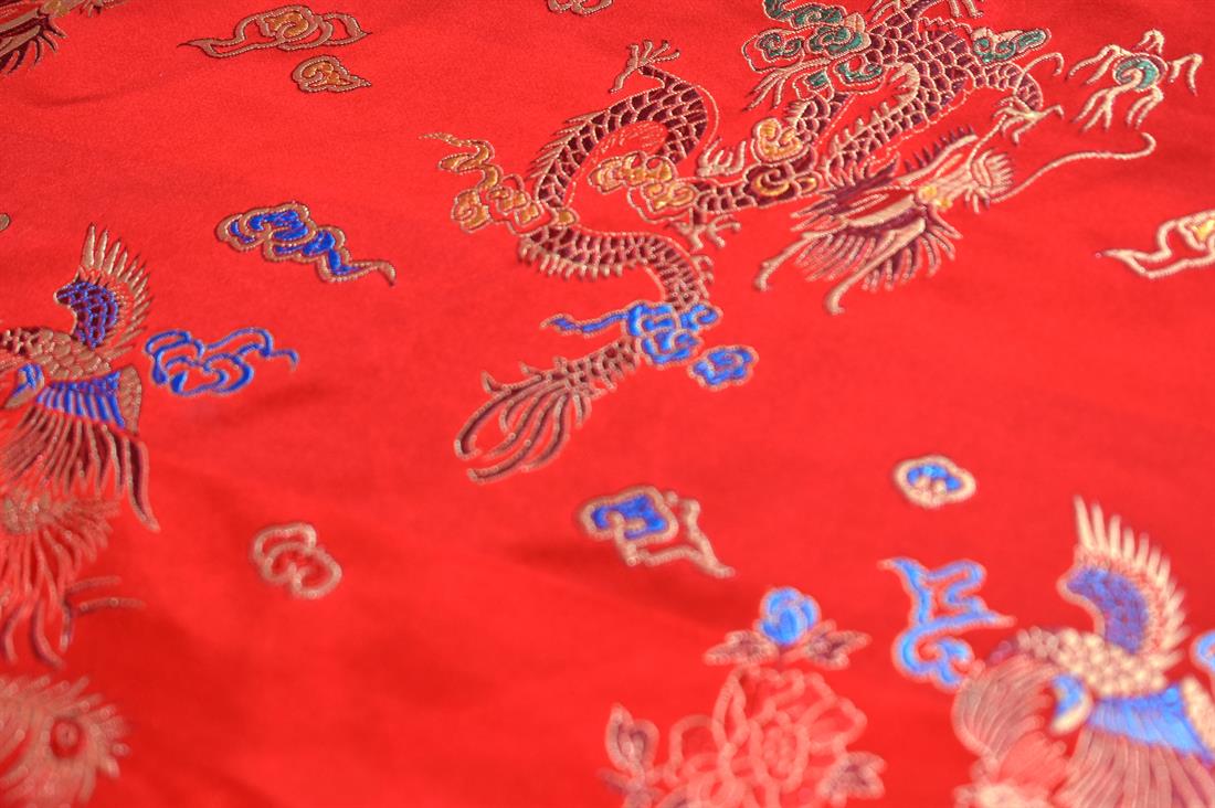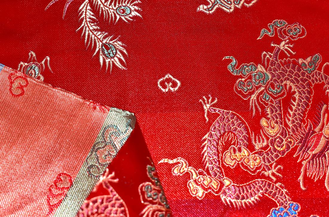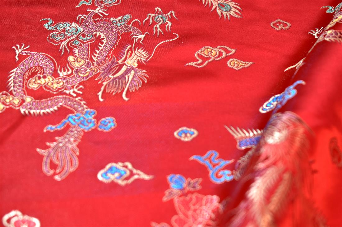 Chinese Brocade Fabric Beautiful 100% polyester Chinese Brocade Fabric with a Dragon design .