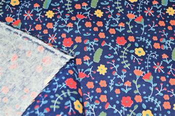 This Winceyette fabric features an illustrated, secret garden design made up of funky florals and leaves set against a plain background.