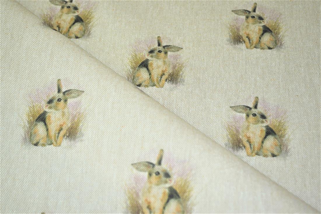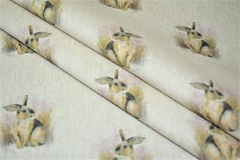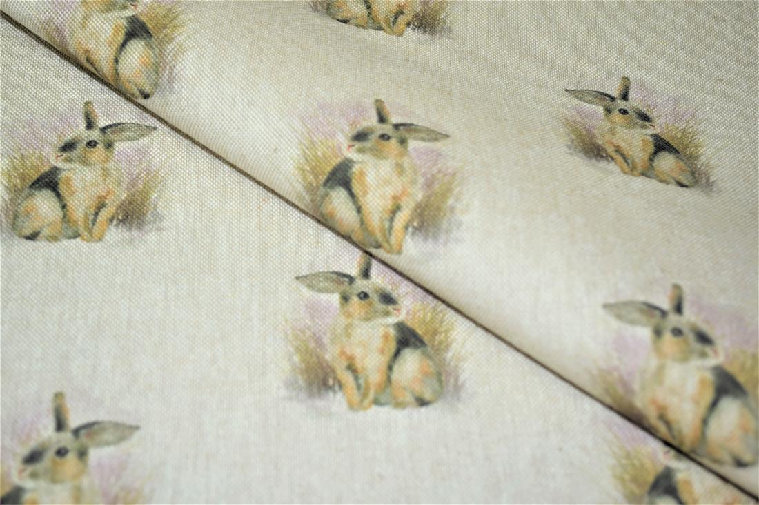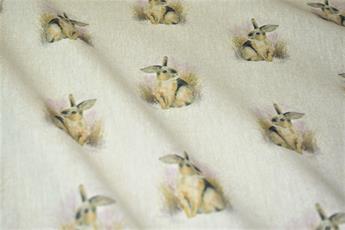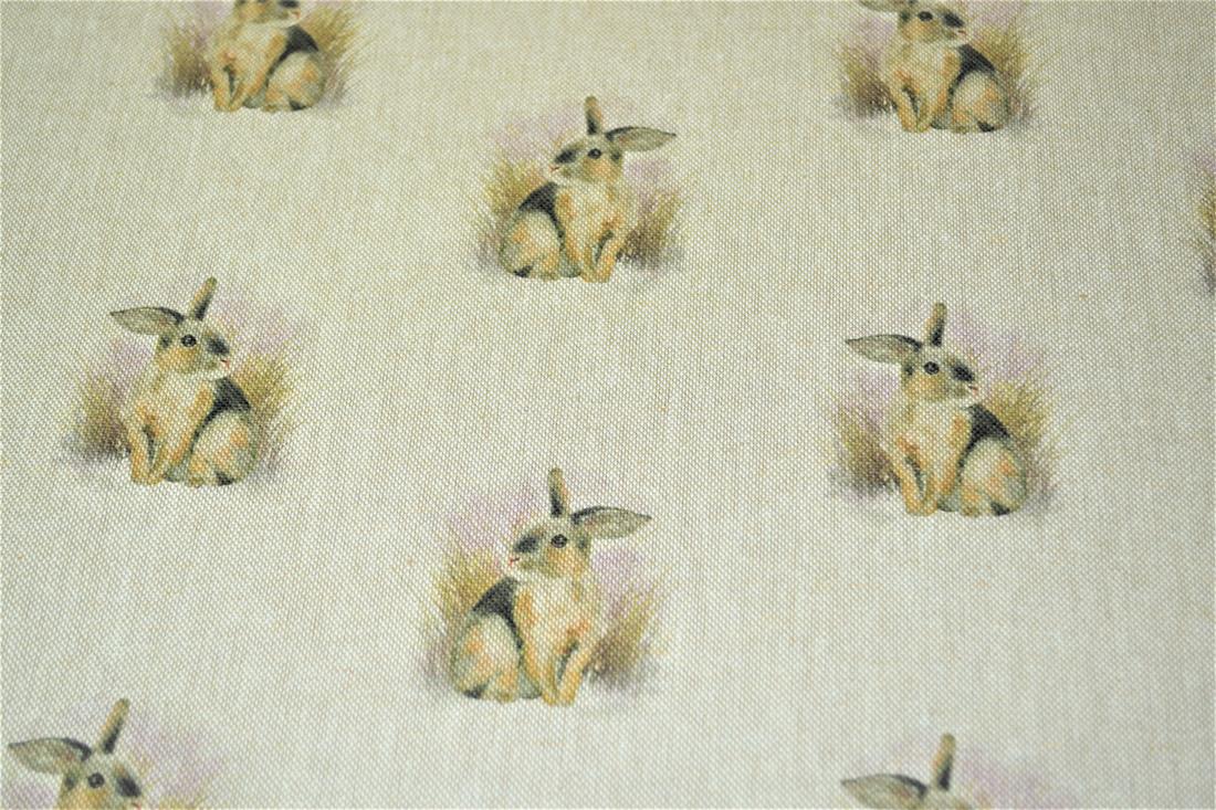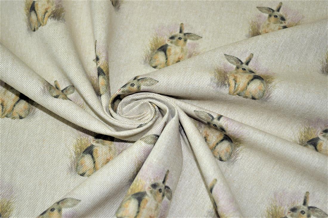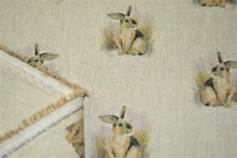 Rabbit All Over- Printed Digital Canvas Fabric, Cotton Rich Linen Look