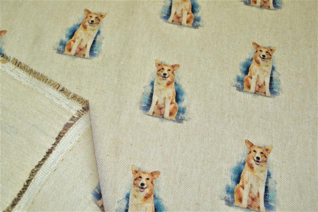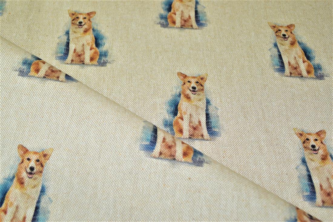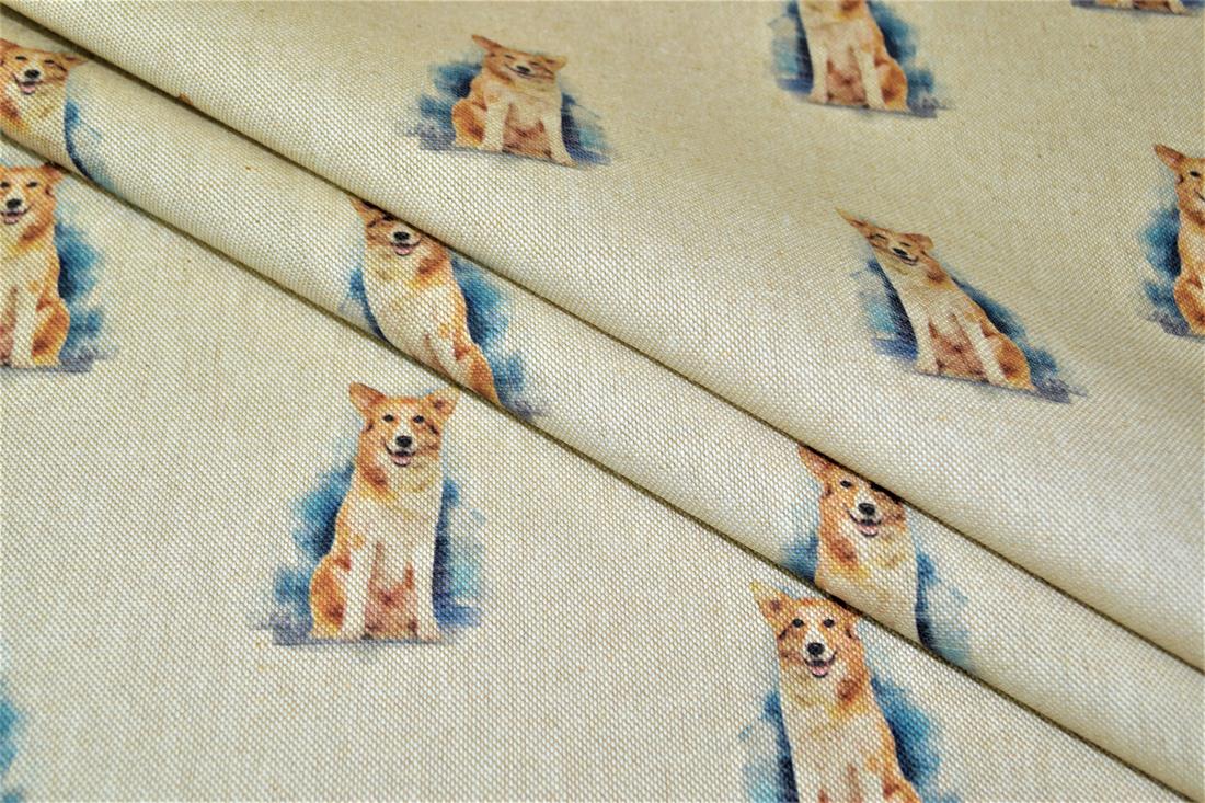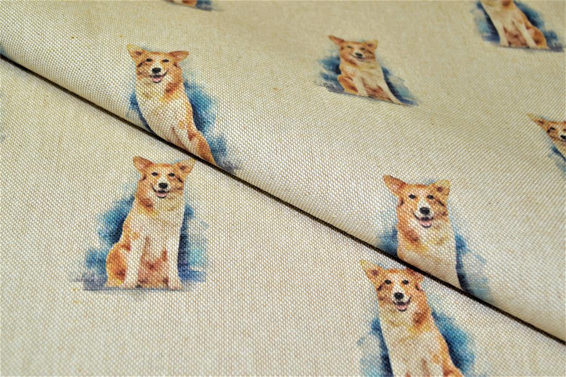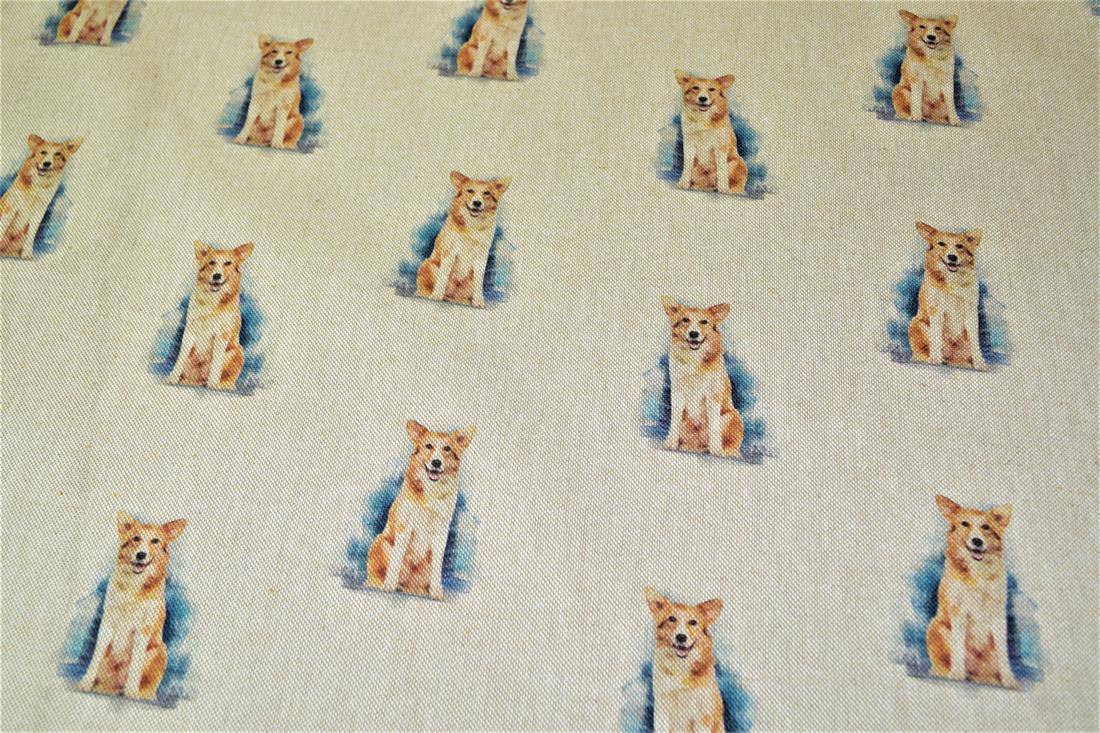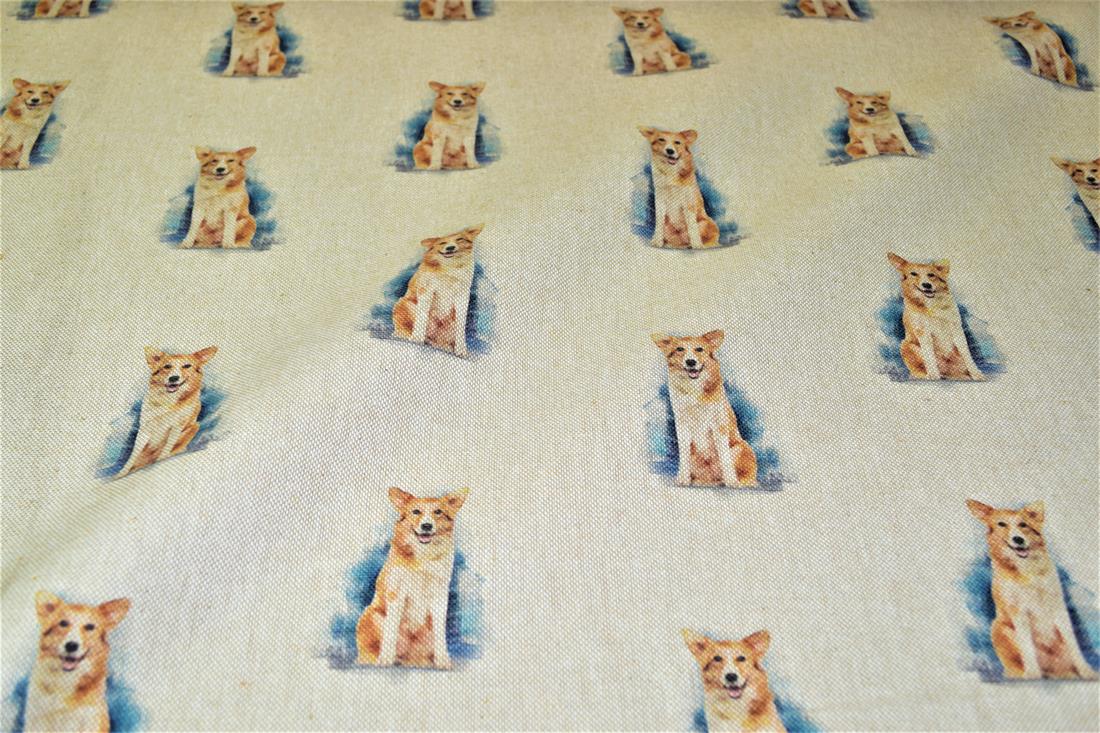Printed Digital Canvas Fabric, Cotton Rich Linen Look, Small Dogs All Over, 80% Cotton and 20% Polyester, 135cm Wide, Weight: 200gsm