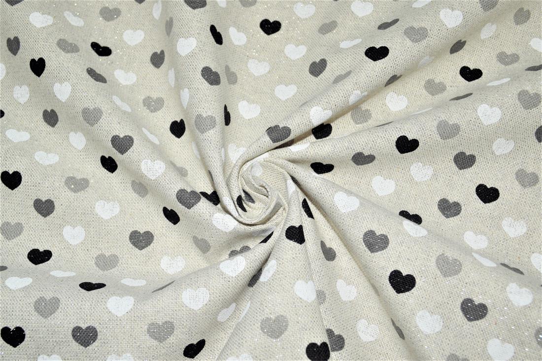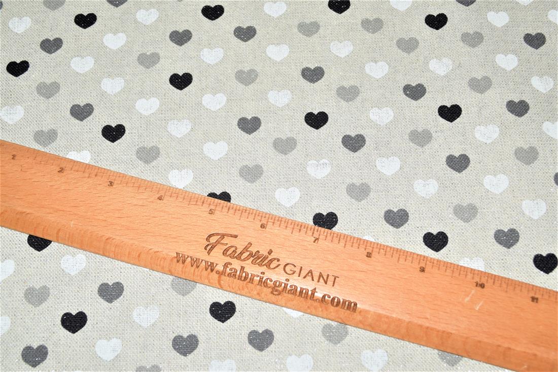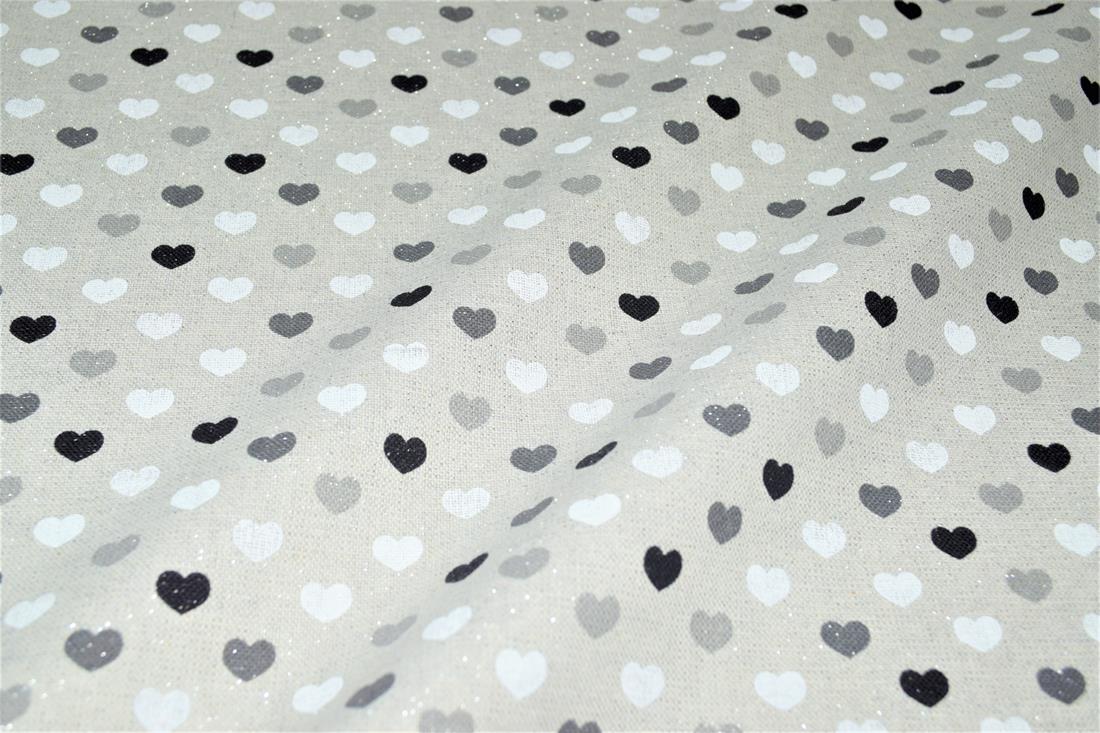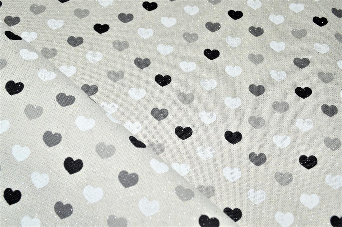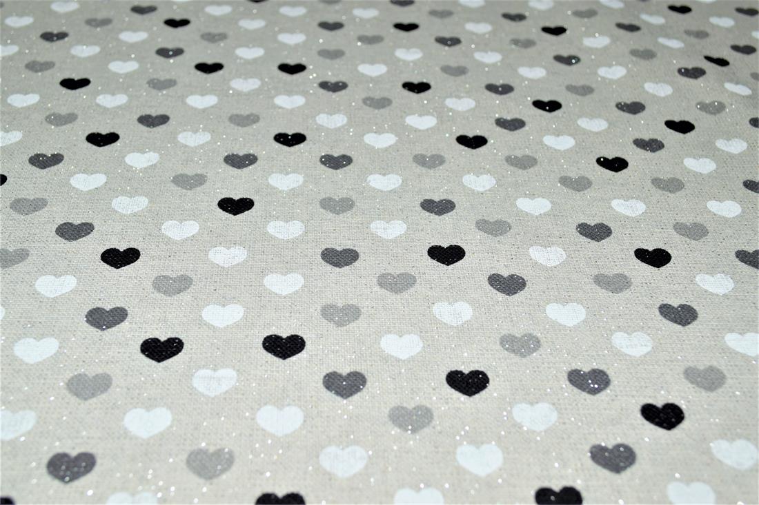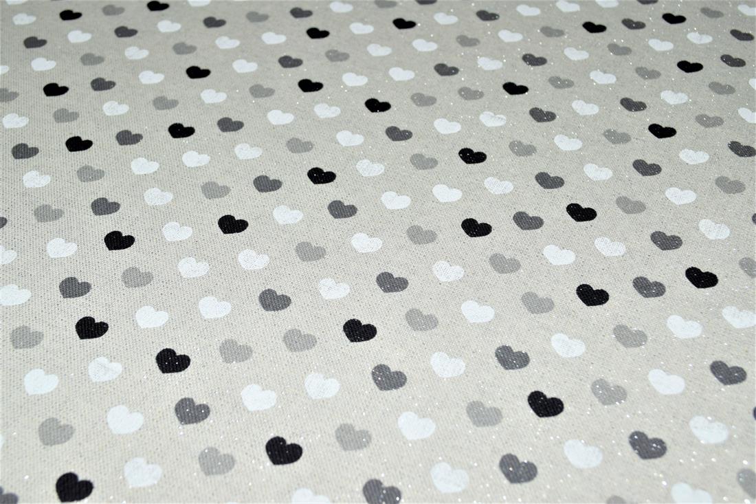 Printed Canvas Sparkle Linen Hearts Mono Fabric