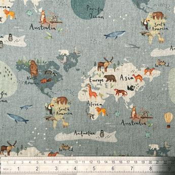 Animal Kingdom  - Printed Pure Panama  Fabric, Cotton Rich Linen Look, Cat All Over,