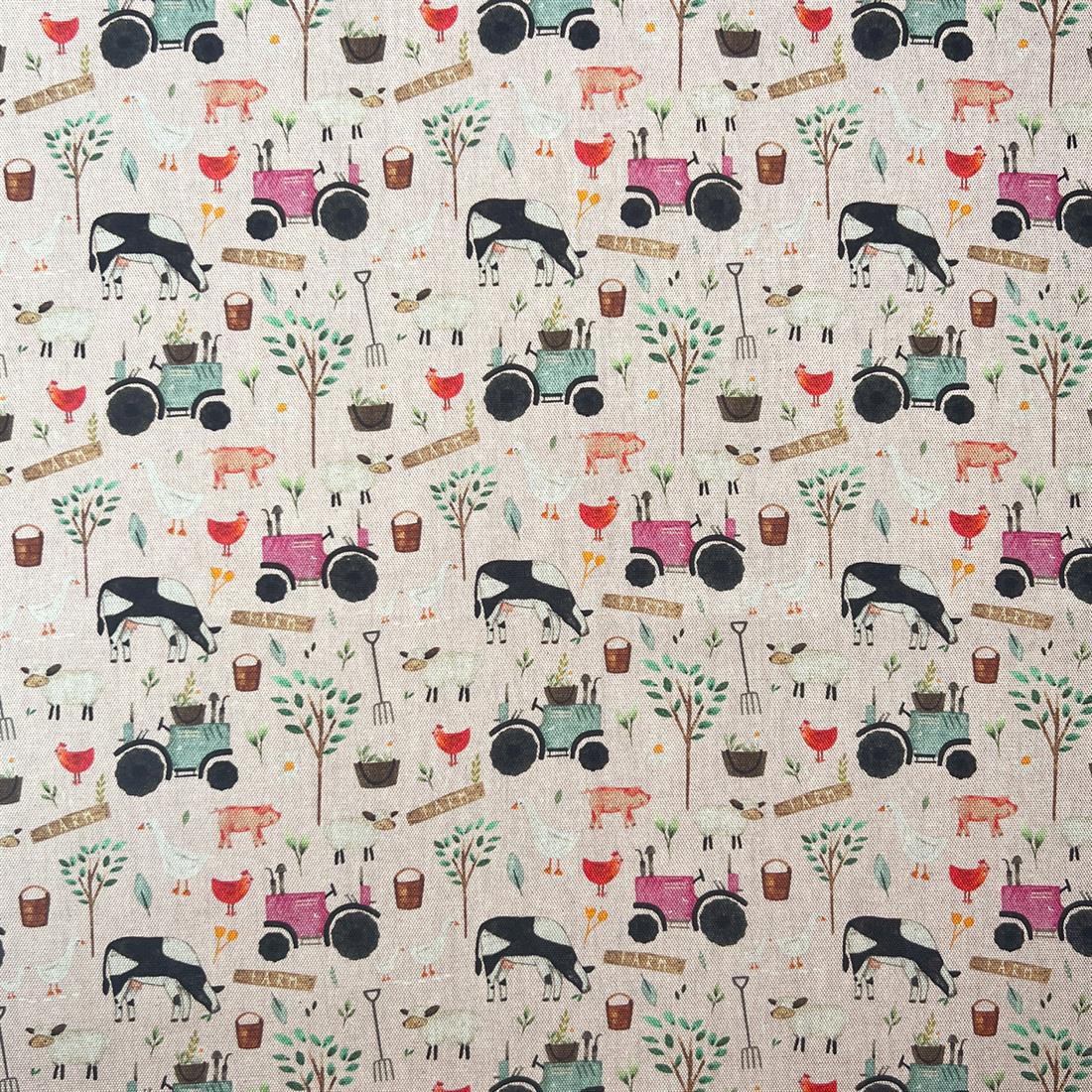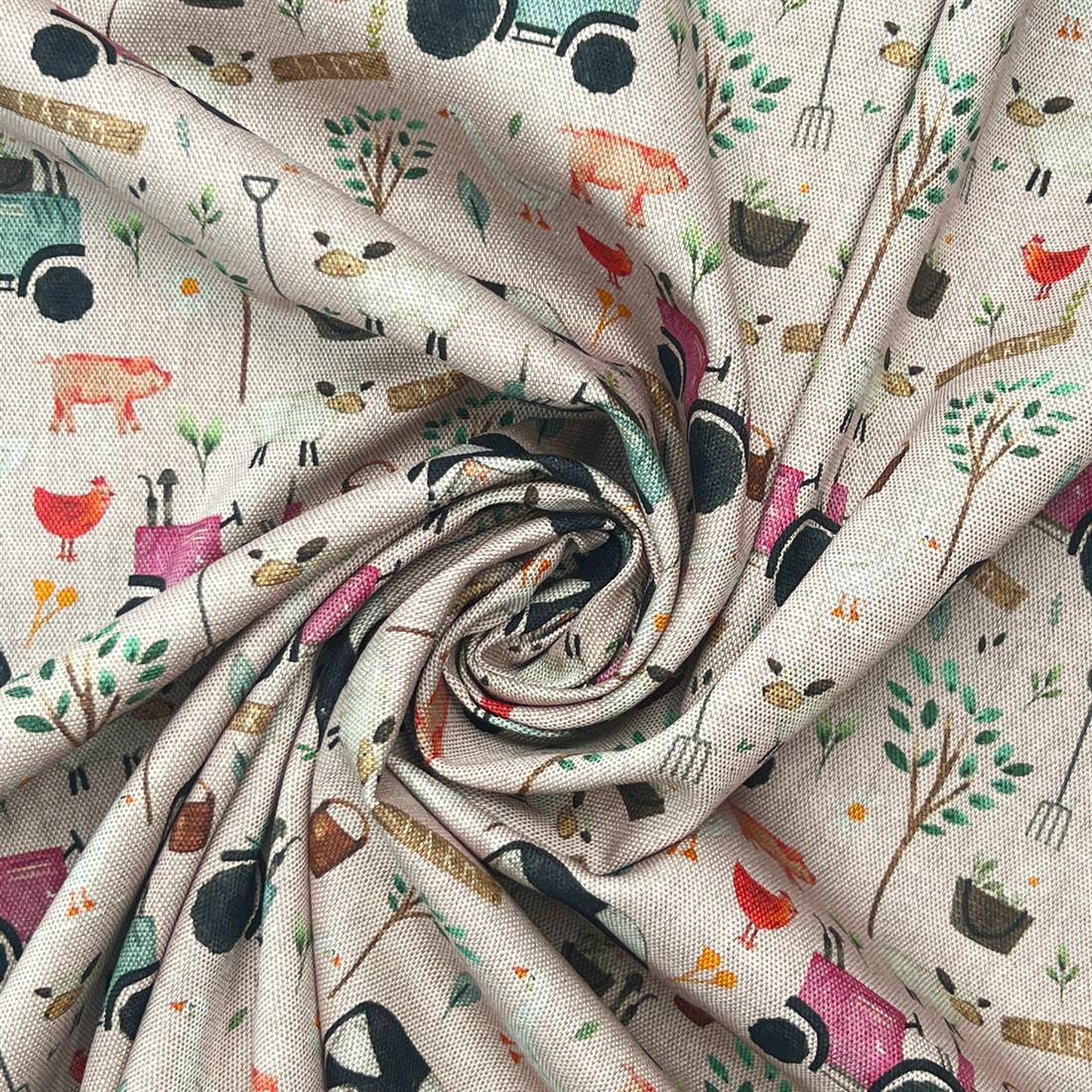 On the Farm - Printed Pure Panama Fabric, Cotton Rich Linen Look, Cat All Over,