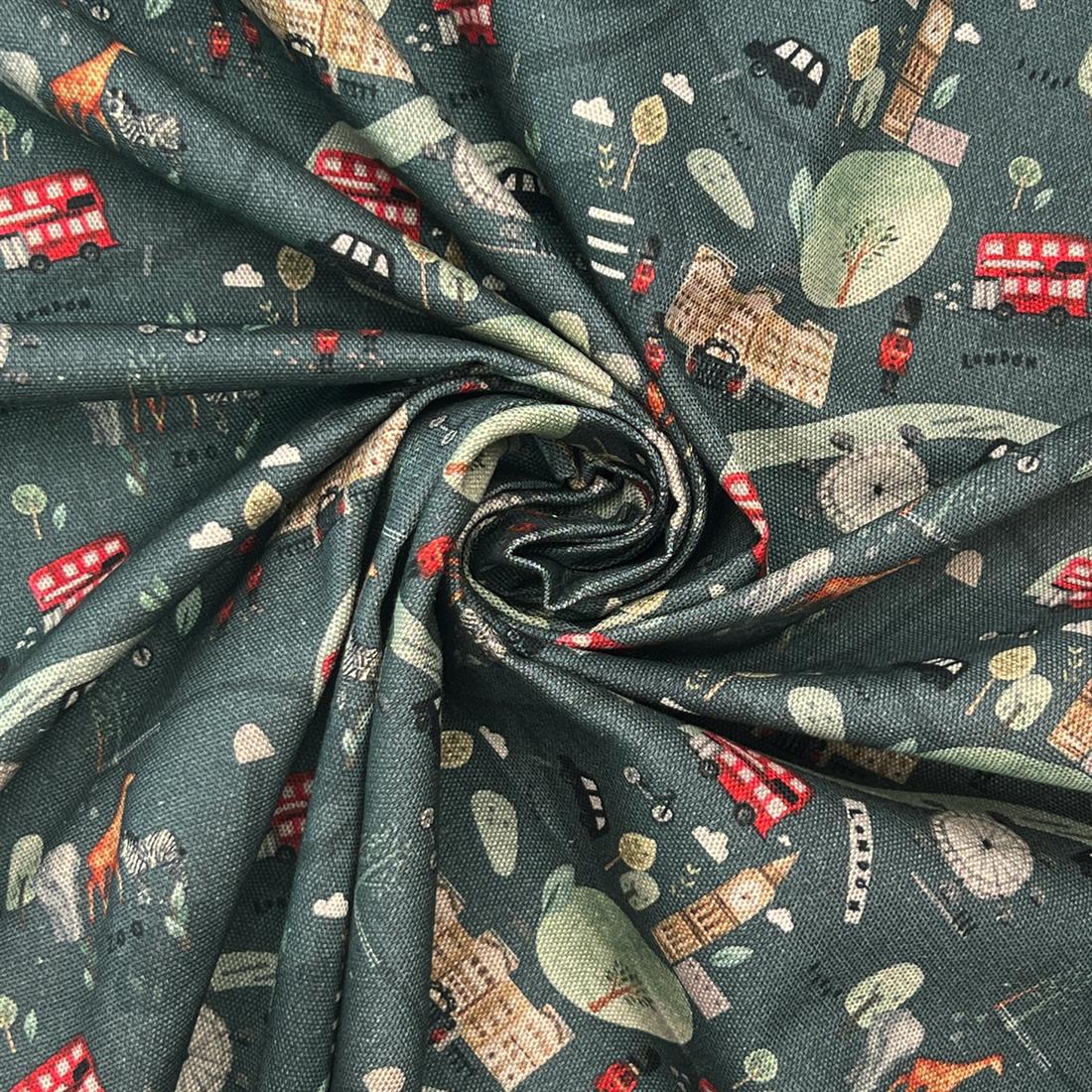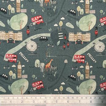 My Day in London - Printed Pure Panama  Fabric, Cotton Rich Linen Look, Cat All Over,