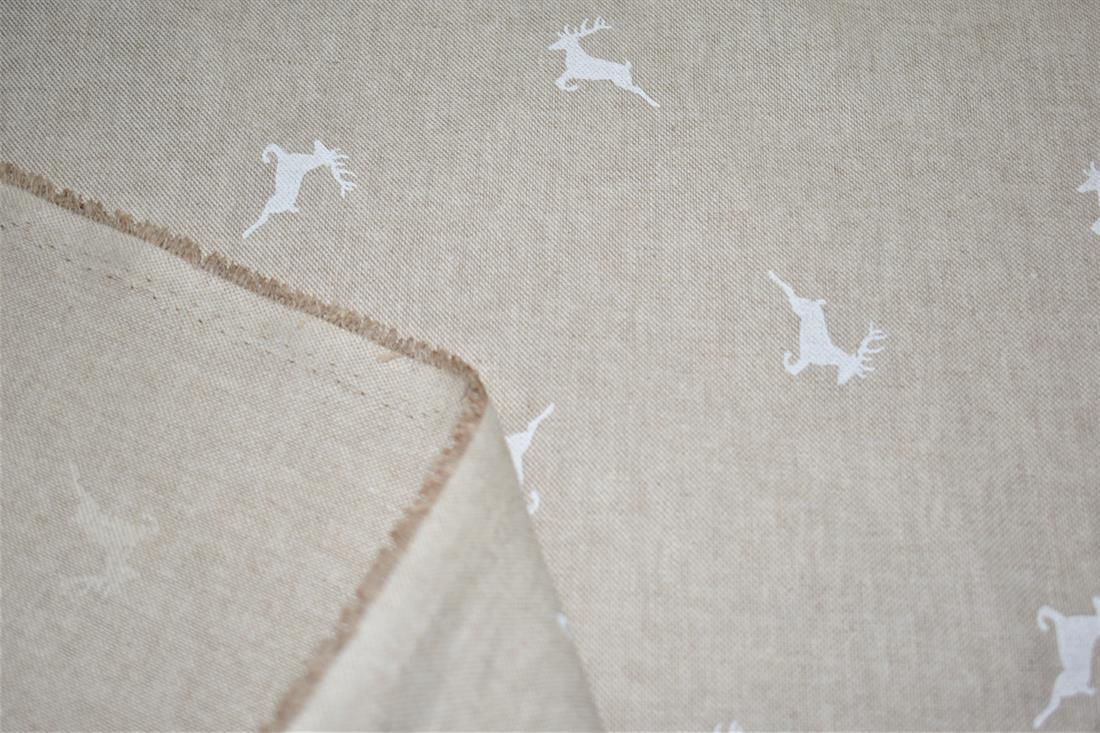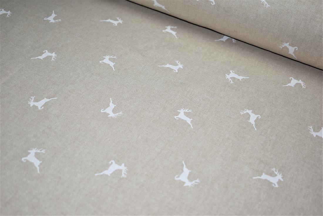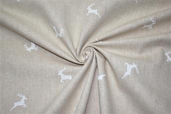 Linen Stags -Printed Digital Canvas Fabric, Cotton Rich Linen Look, All Over