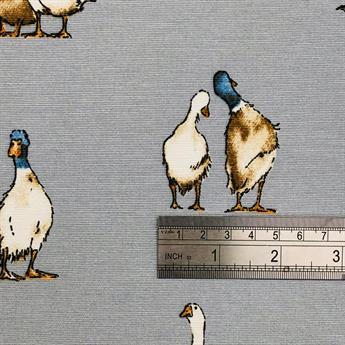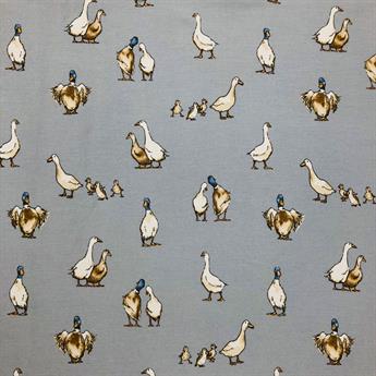 Shabby Ducks - Printed Digital Canvas Fabric, Cotton Rich Linen Look, Cat All Over