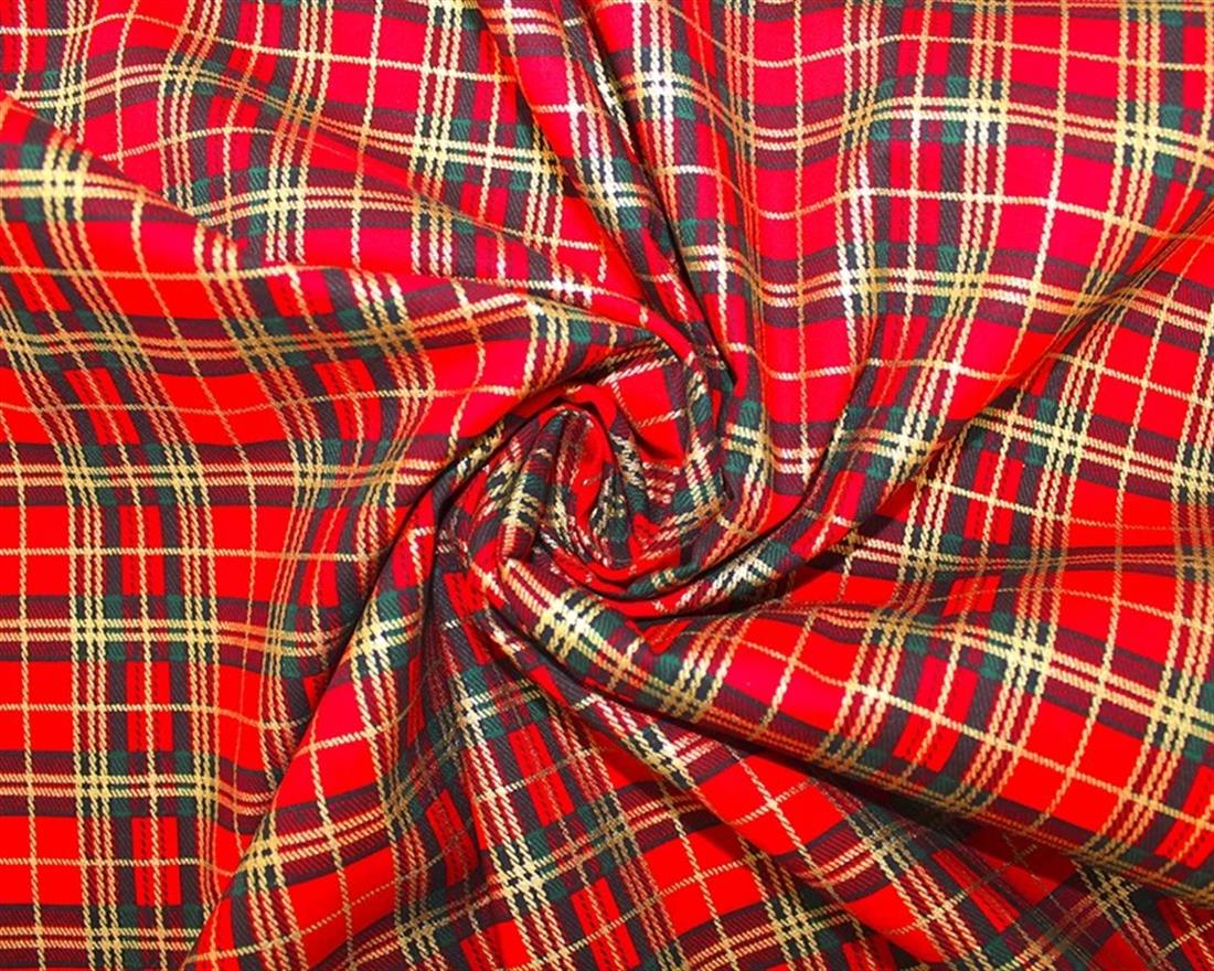 in stockPrinted Christmas Metallic Tartan Cotton Poplin