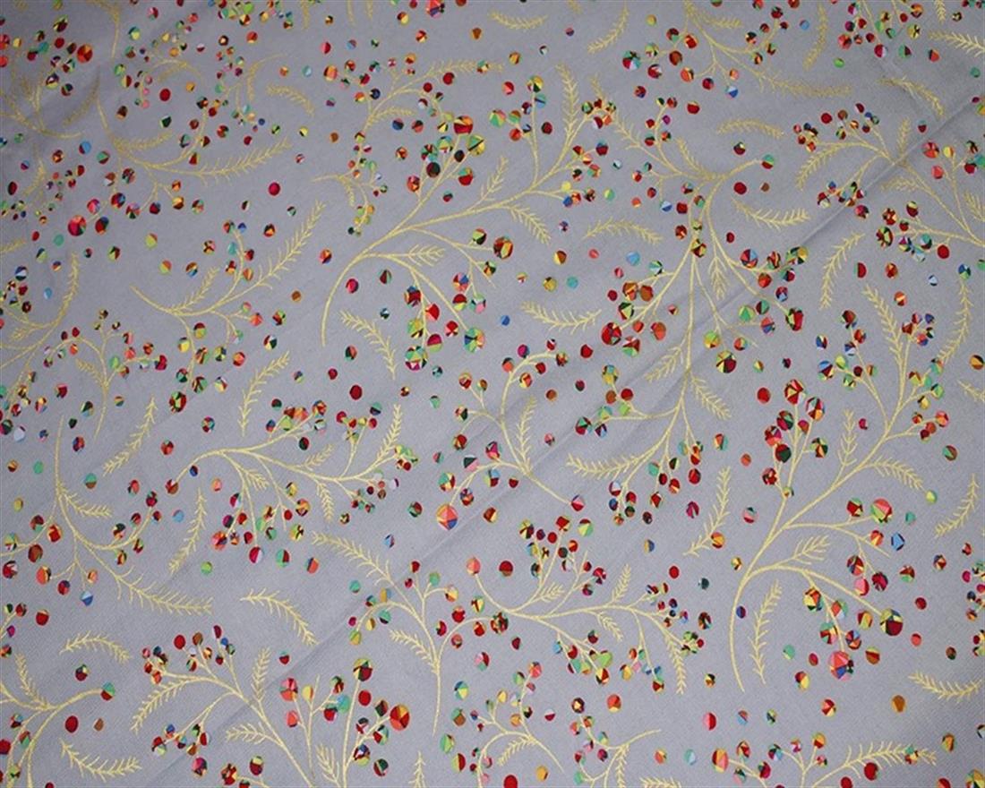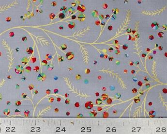 Premium Printed Rainbow Holly Branches Metallic 100% Cotton Print Cotton Fabric