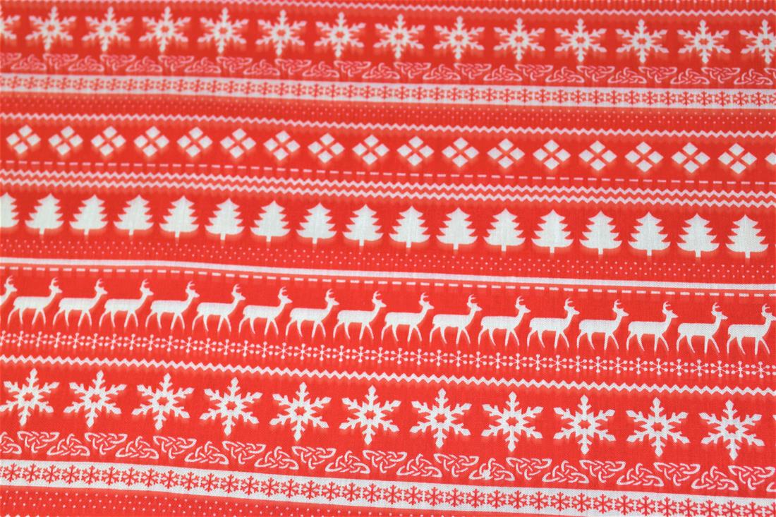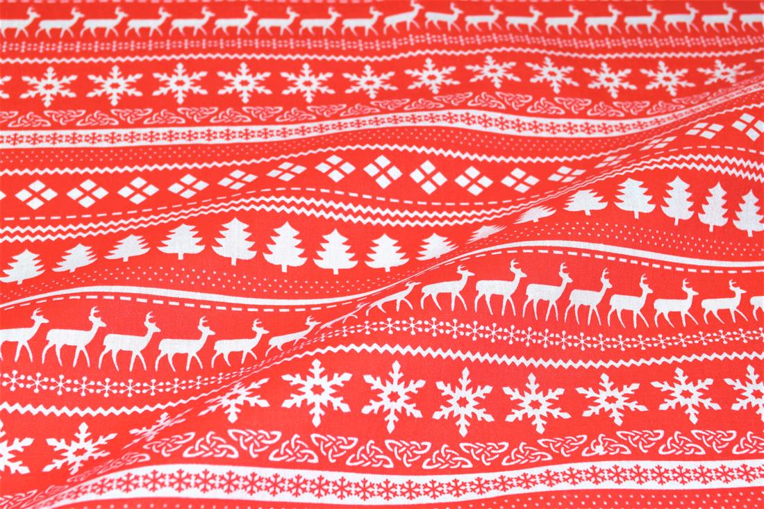 Printed Christmas Festive Polycotton Fabric, 65% Polyester and 35% Cotton, 112cm Wide, High Quality; This beautiful christmas fabric is great for dressmaking, cushion-covers, tablecloths, patchwork, bunting, quilting, and for craft projects. Colours may slightly vary due to the lighting during the photo shooting or the monitor's display.