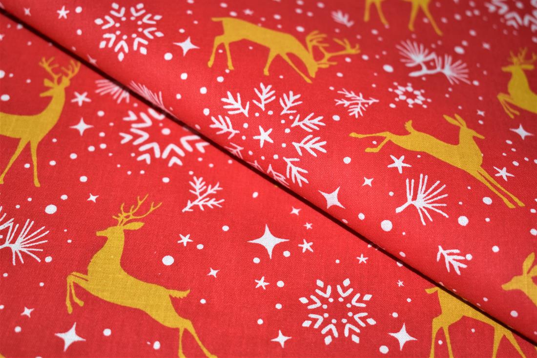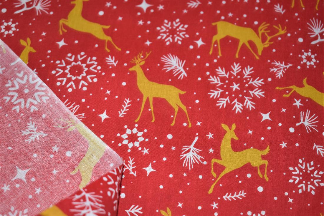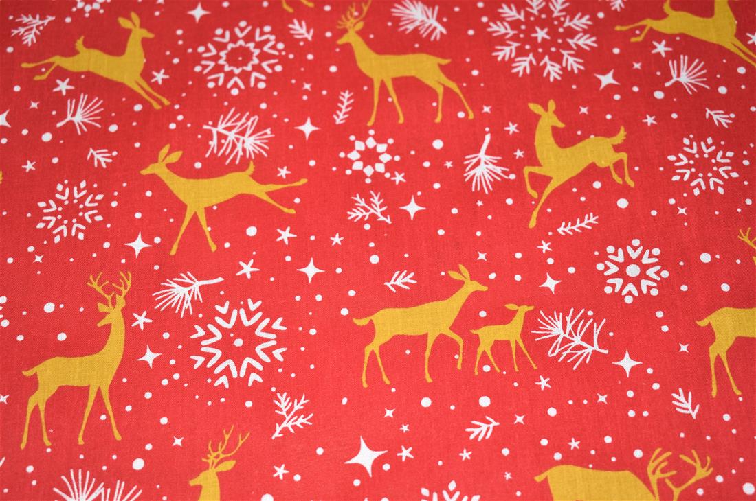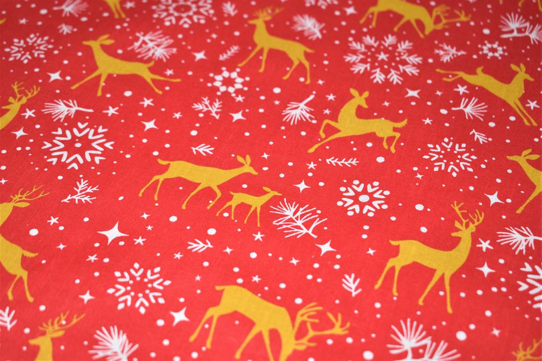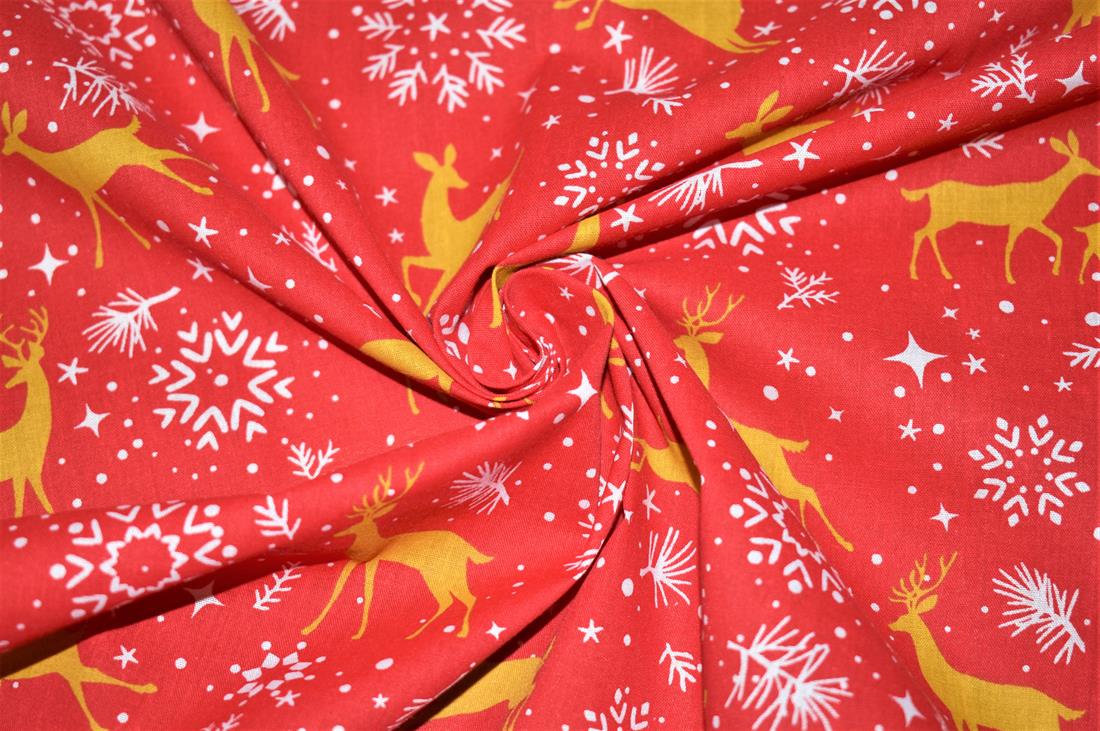 Printed Christmas Polycotton Fabric, Reindeers Print 80% Polyester and 20% Cotton, 112cm Wide, High Quality; Weight; 90gsm Our polycotton prints are made from a blend of polyester and cotton. This lovely fabric is lightweight fabric is ideal for clothing, cushion-covers, bed sheets, tablecloths, napkins, face masks, crafts, and much more. Colours may slightly vary due to the lighting during the photo shooting or the monitor's display.Washing - 30 degrees celsius Colours may slightly vary due to the lighting during the photo