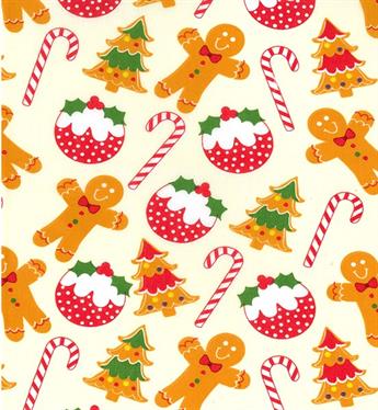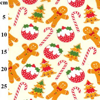 Printed Polycotton Fabric Gingerbread Christmas Candy Canes Xmas Pudding Tree