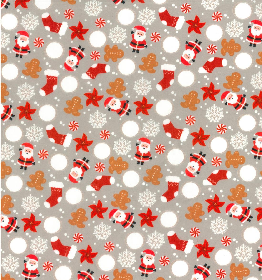 Premium Printed Polycotton Fabric Christmas Festive Tossed Santa Clause Snowflakes