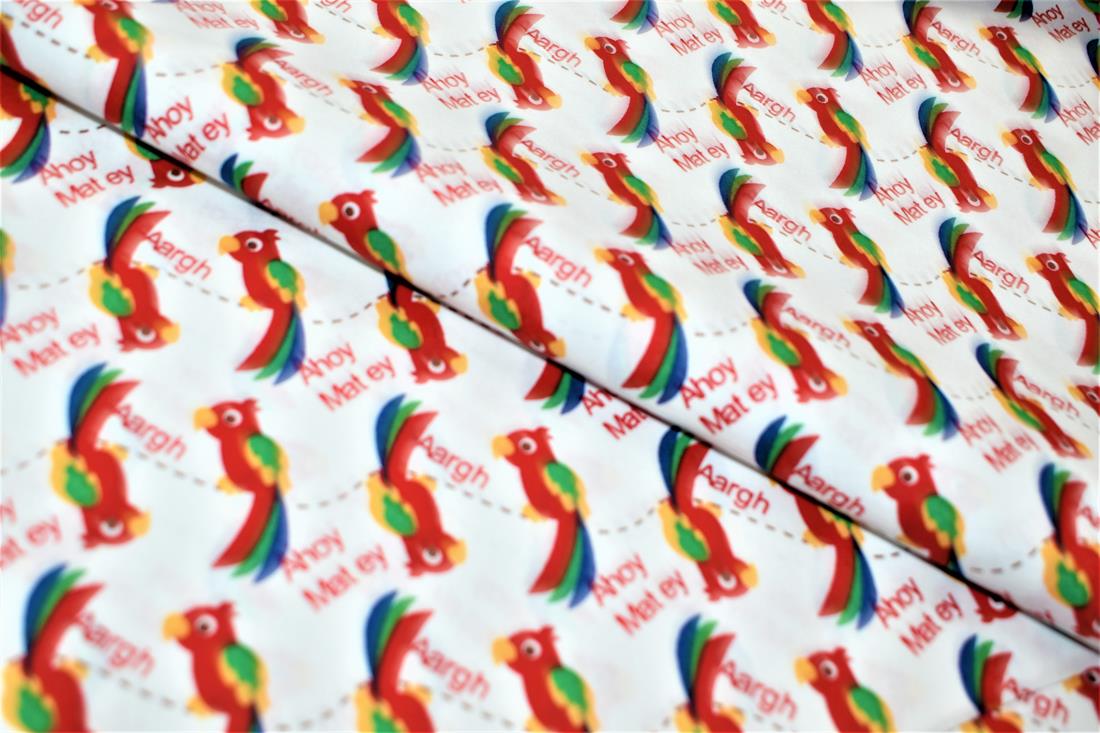 Parrots Printed 100% Cotton Poplin Fabric Fabric is characterised by its distinctive ribbed texture and tightly closed weave that gives the fabric a lovely luster. 100% cotton poplin combines the lightness of cotton with the strength of poplin making it thin and cool with an easy drape, whilst being sturdy and tough. This is an ideal fabric for dress making, upholstery, uniforms, shirts and skirts, trousers and shackets and more. Composition: 100% Cotton Weight: 135gsm Width: 112cm