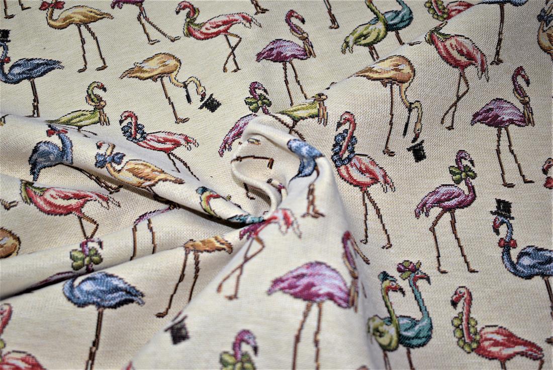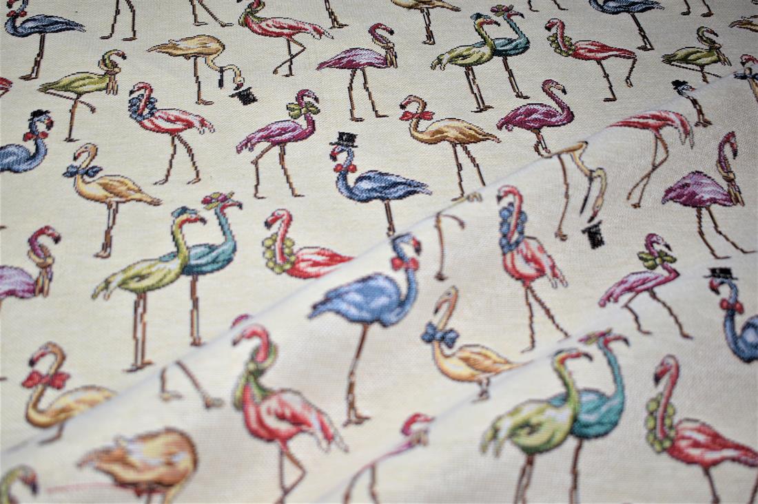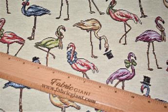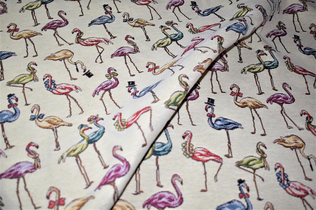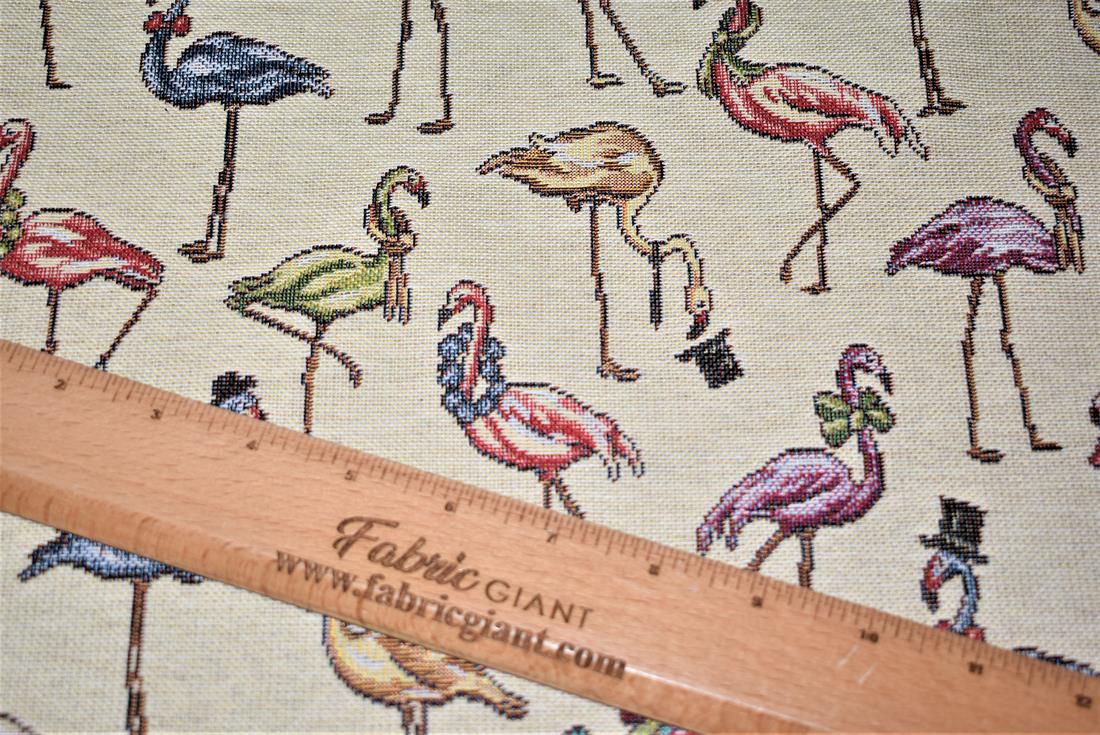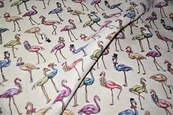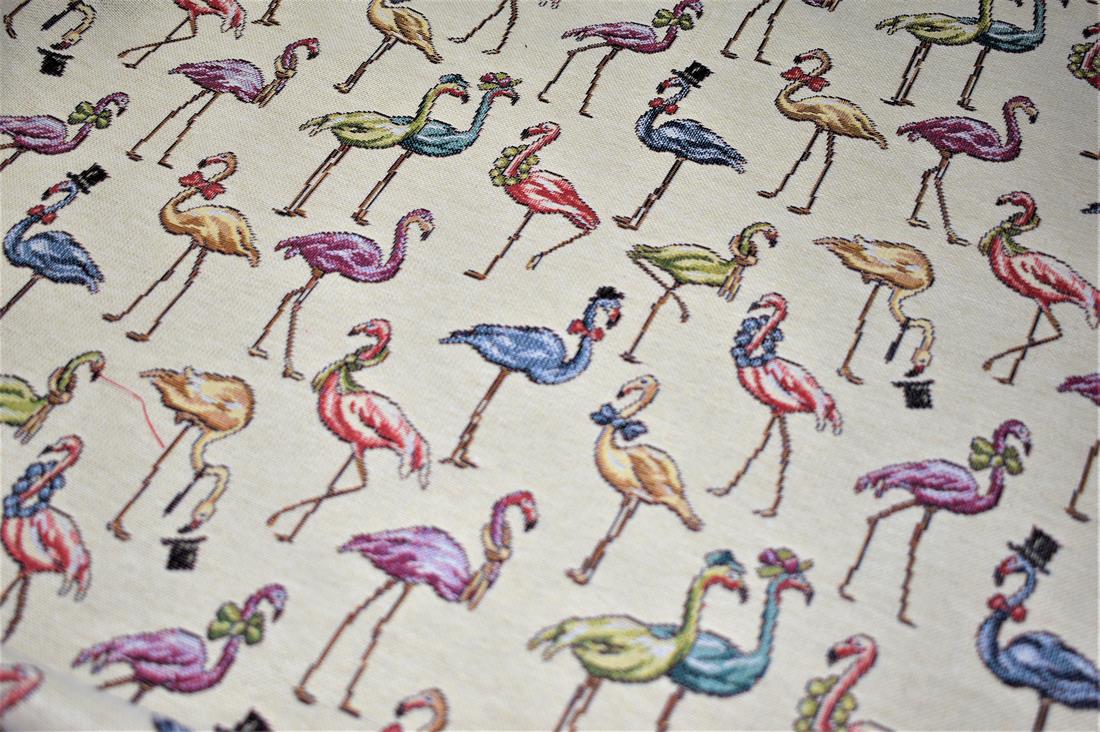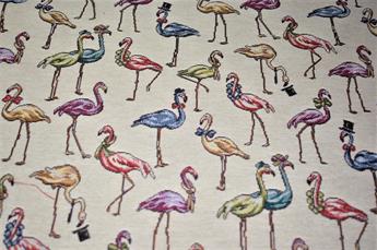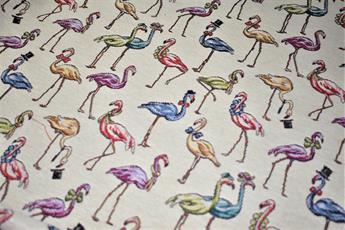 Flamingos - Printed Luxury Weight Tapestry Cotton Rich Fabric Little Harlequinn Print, Hight Quality.