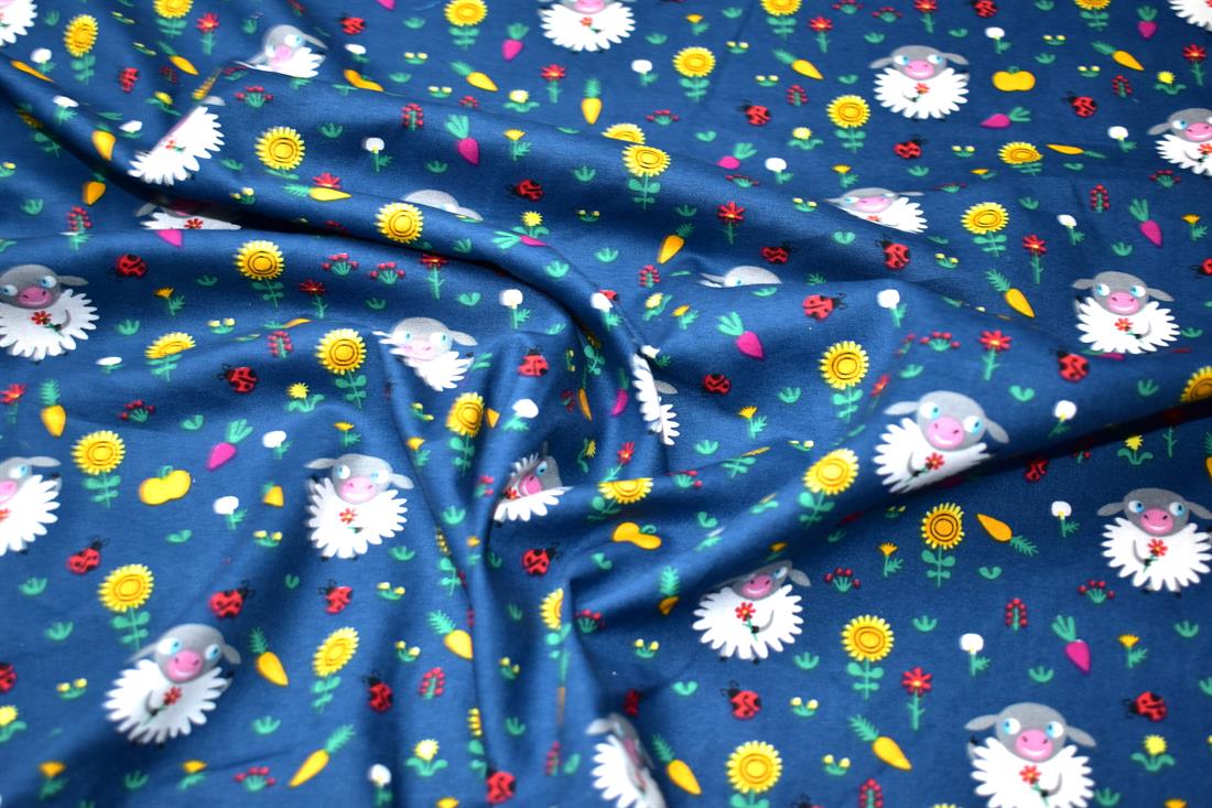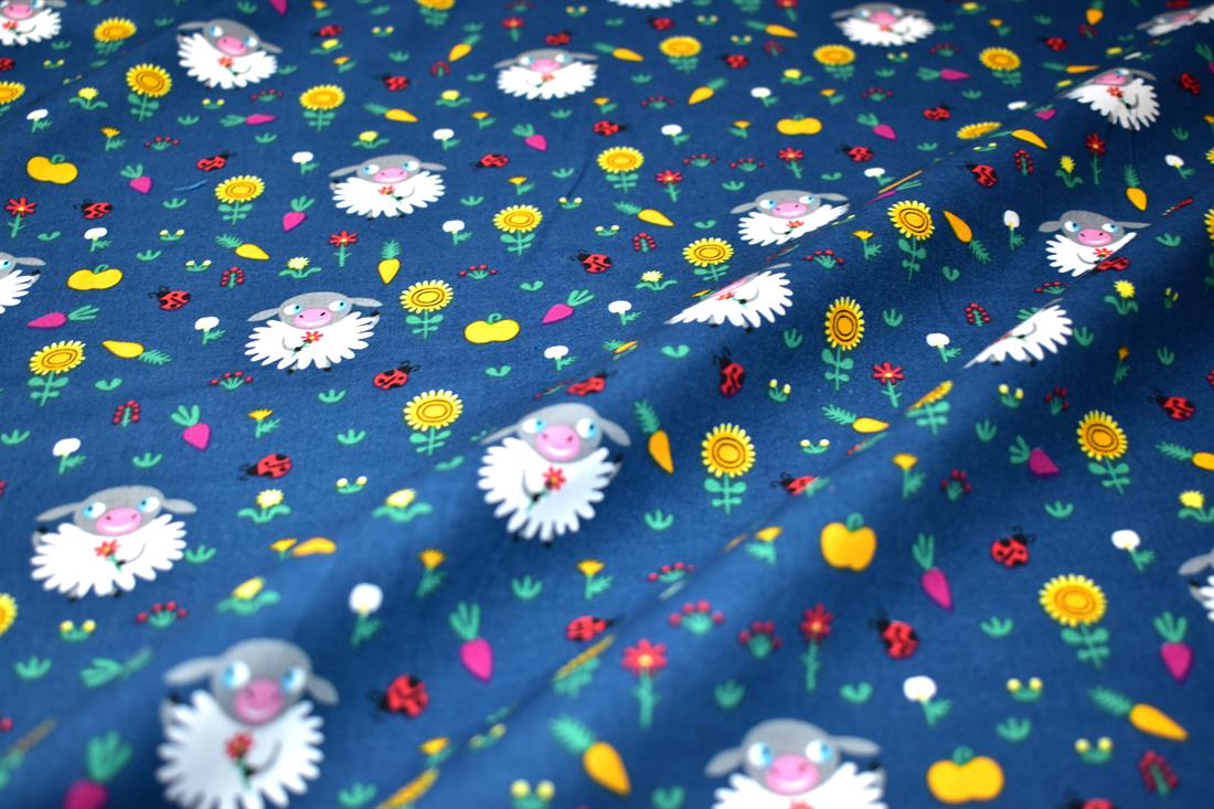This poplin fabric features a quirky, fun, ditsy, spring sheep and florals design in a range of colours. Composition: 100% Cotton