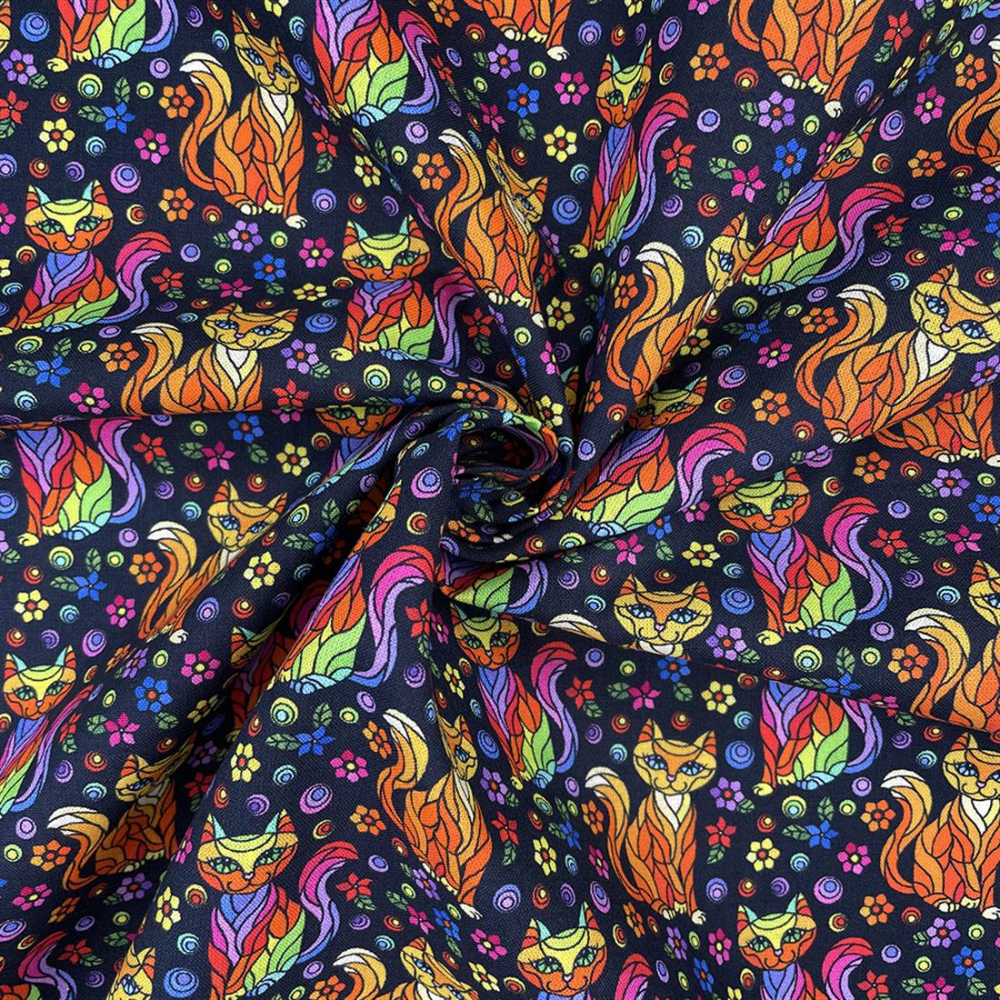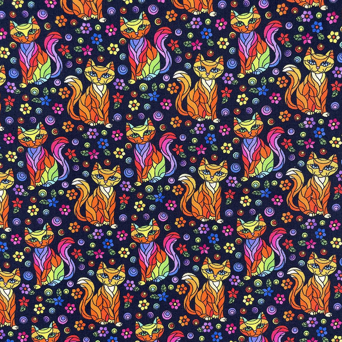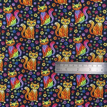 Mosaic Cat- Premiume Printed Crafty Cottons Digital Printed 100% Cotton Fabric
