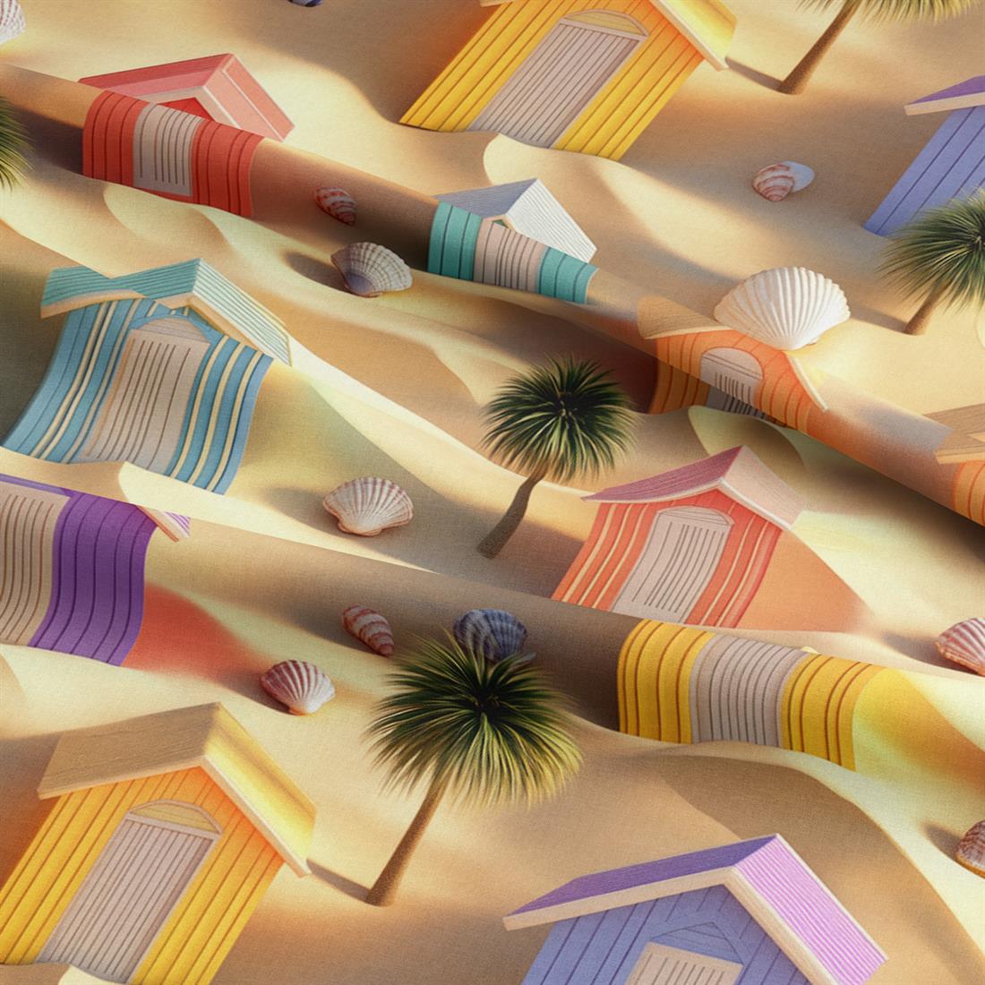 Sandy Beach Huts Crafty Cottons, Digital Printed, 100% Cotton Fabric