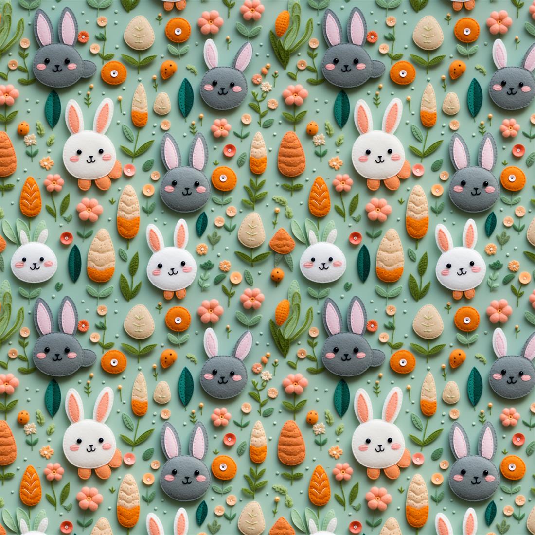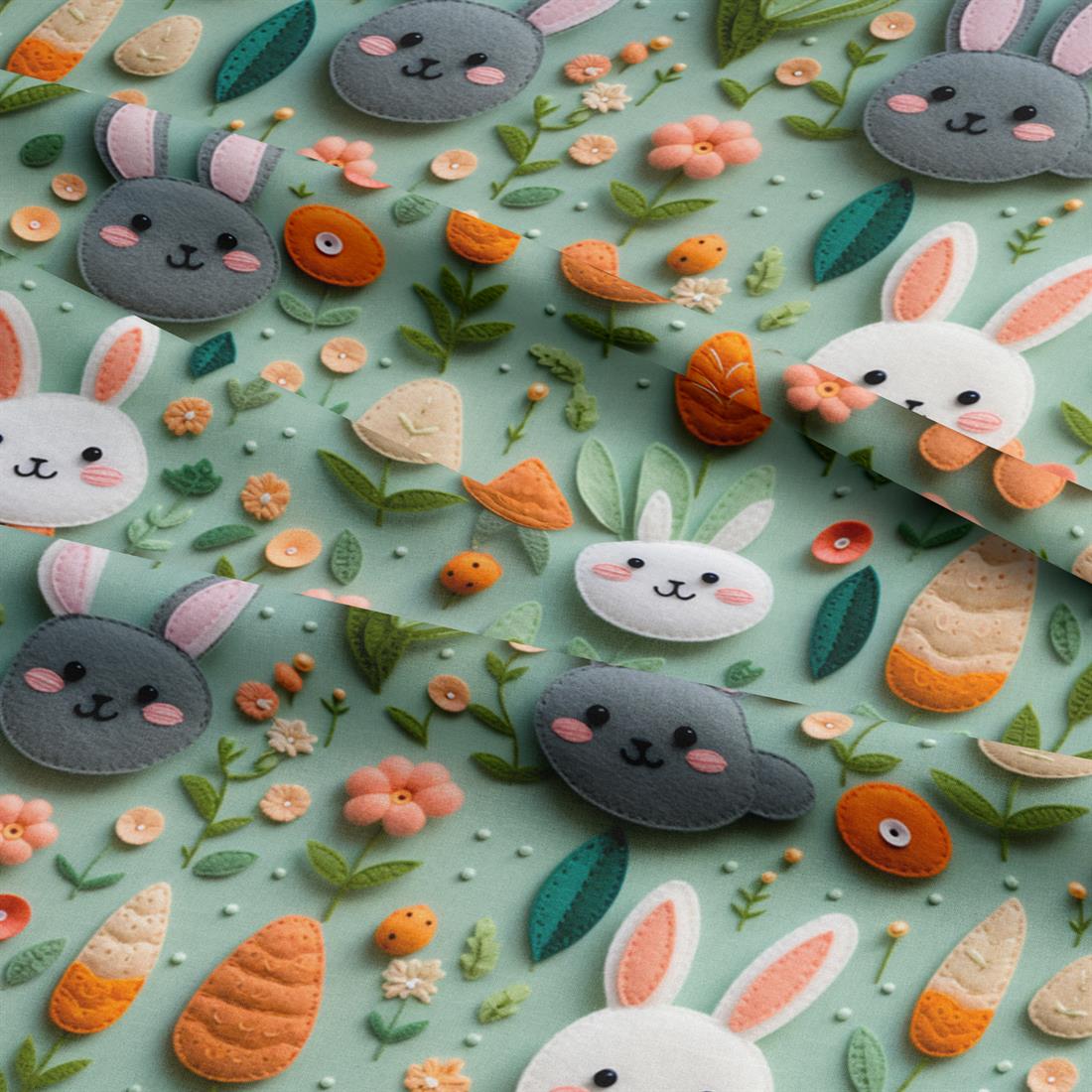 Felt Easter Bunnies Crafty Cottons, Digital Printed, 100% Cotton Fabric