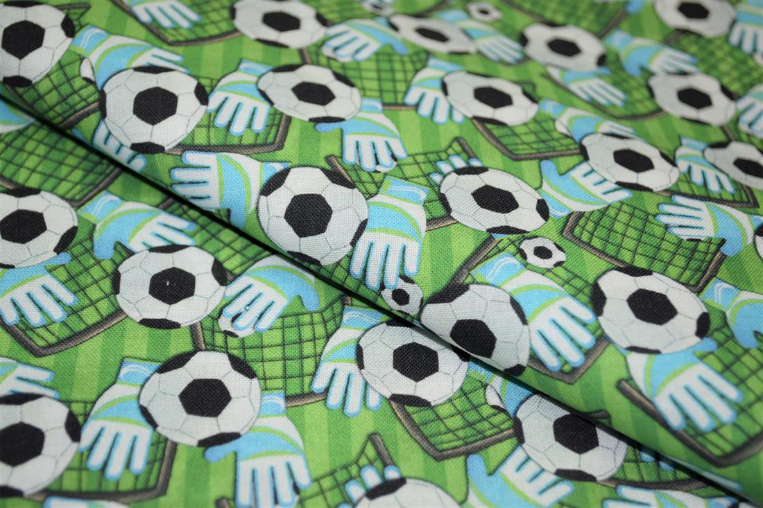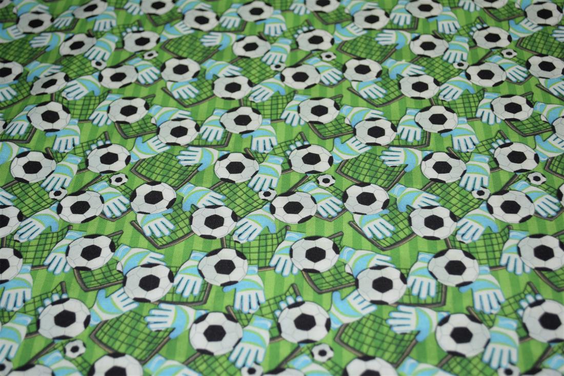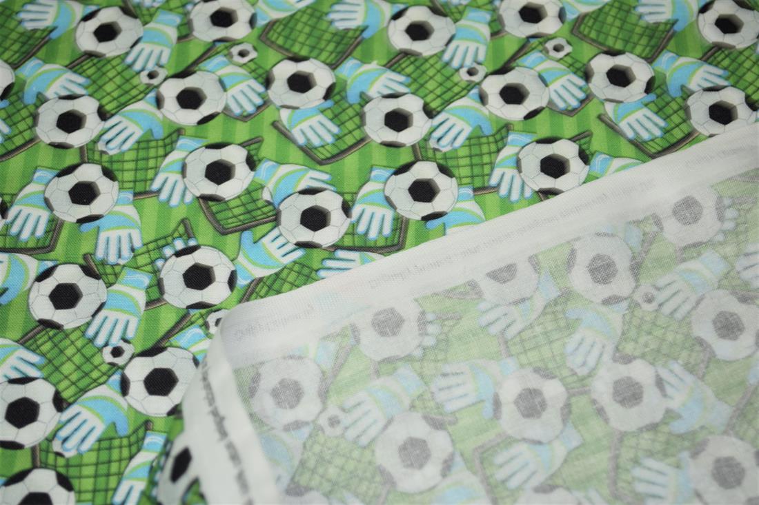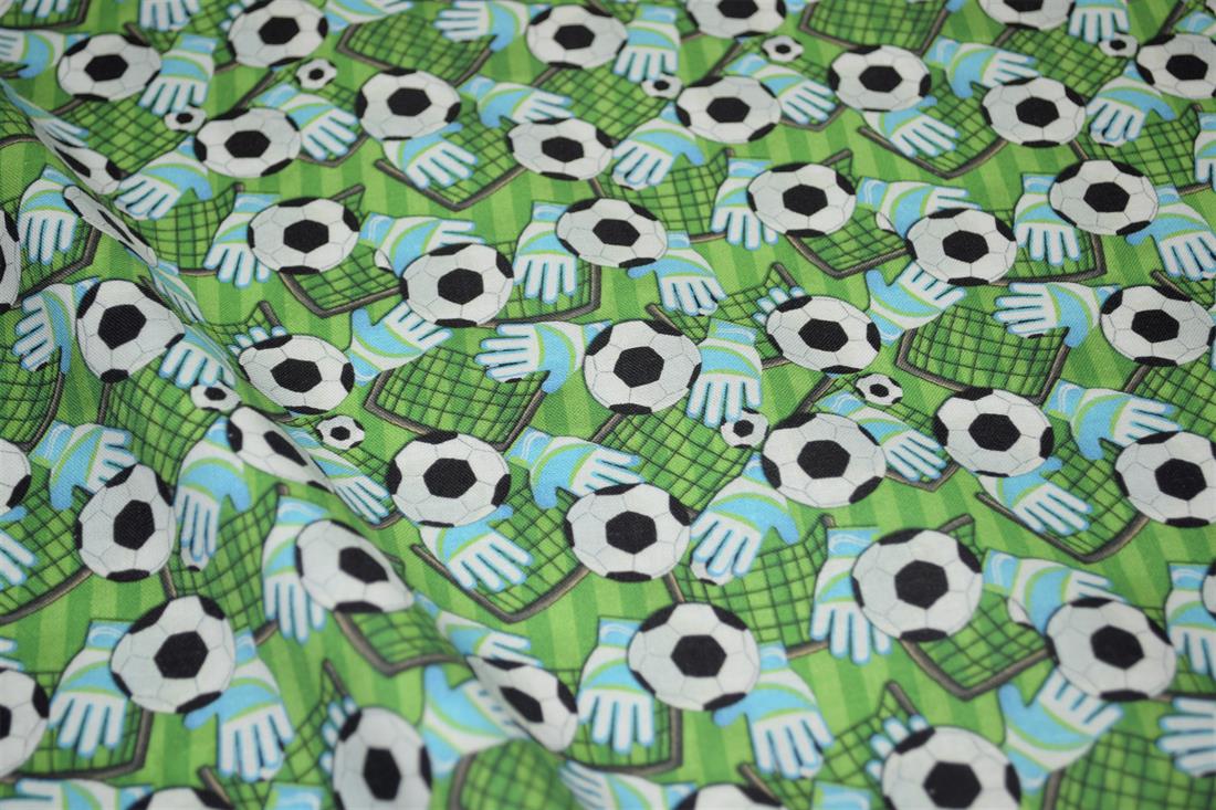 Premium Printed Craft 100% Cotton Football, goal and gloves Print Cotton Fabric, 148cm Wide, High QualityThis digital print fabric is ideal for dressmaking, quilting, patchwork, bunting, cushion-covers, and for other craft projects. Colours may slightly vary due to the lighting during the photo shooting or the monitor's display.