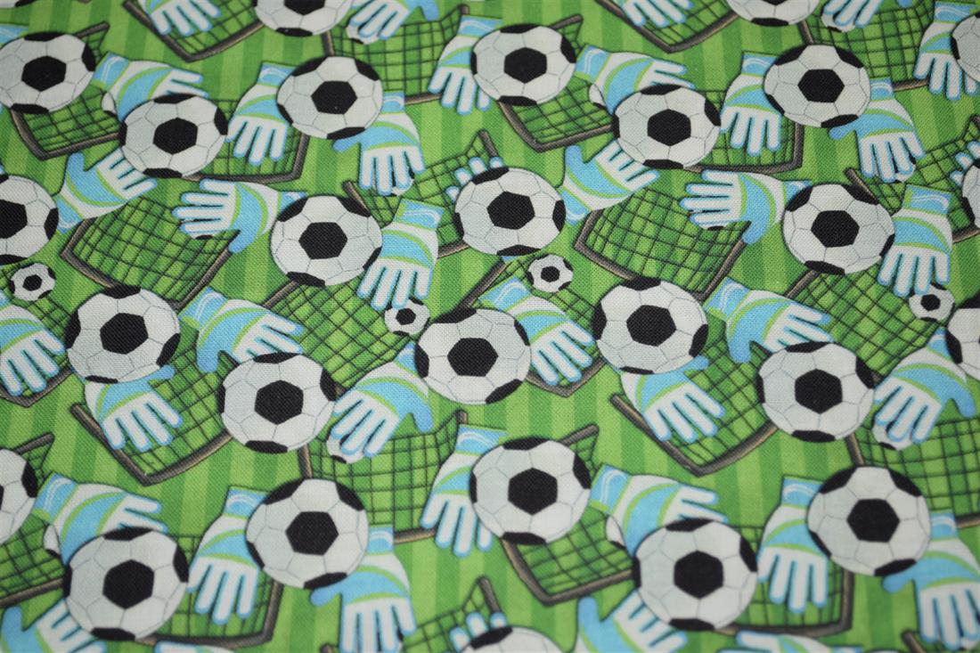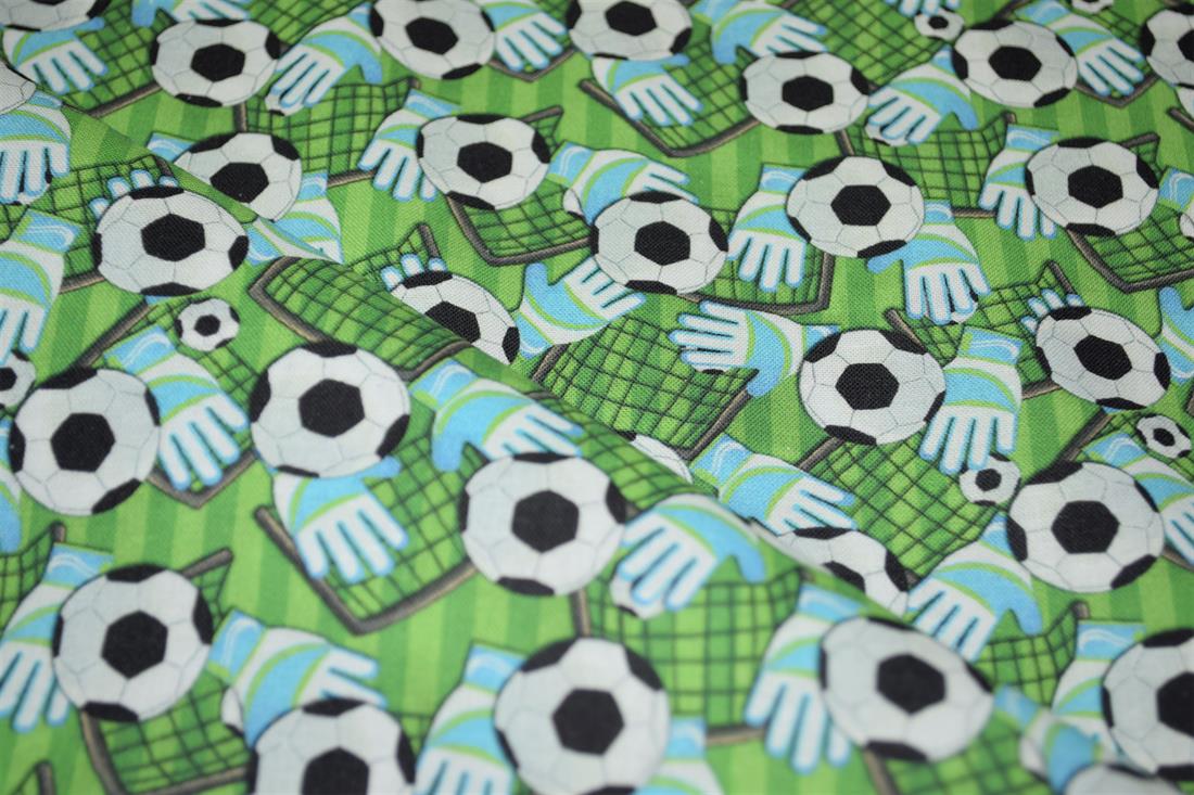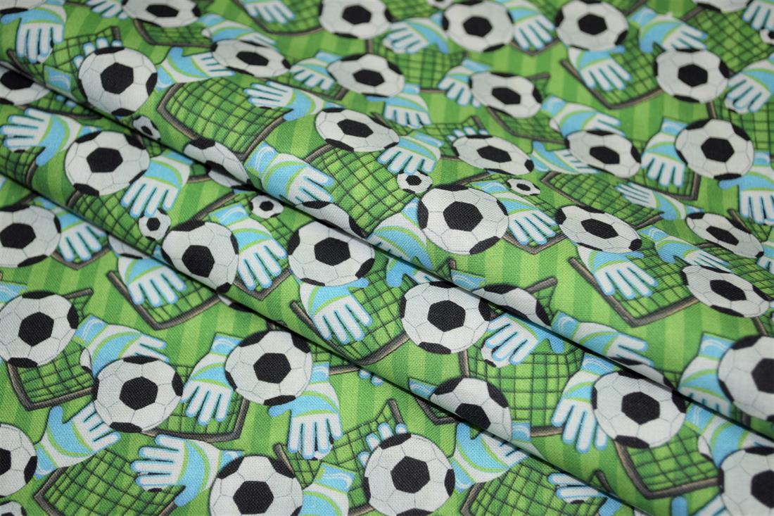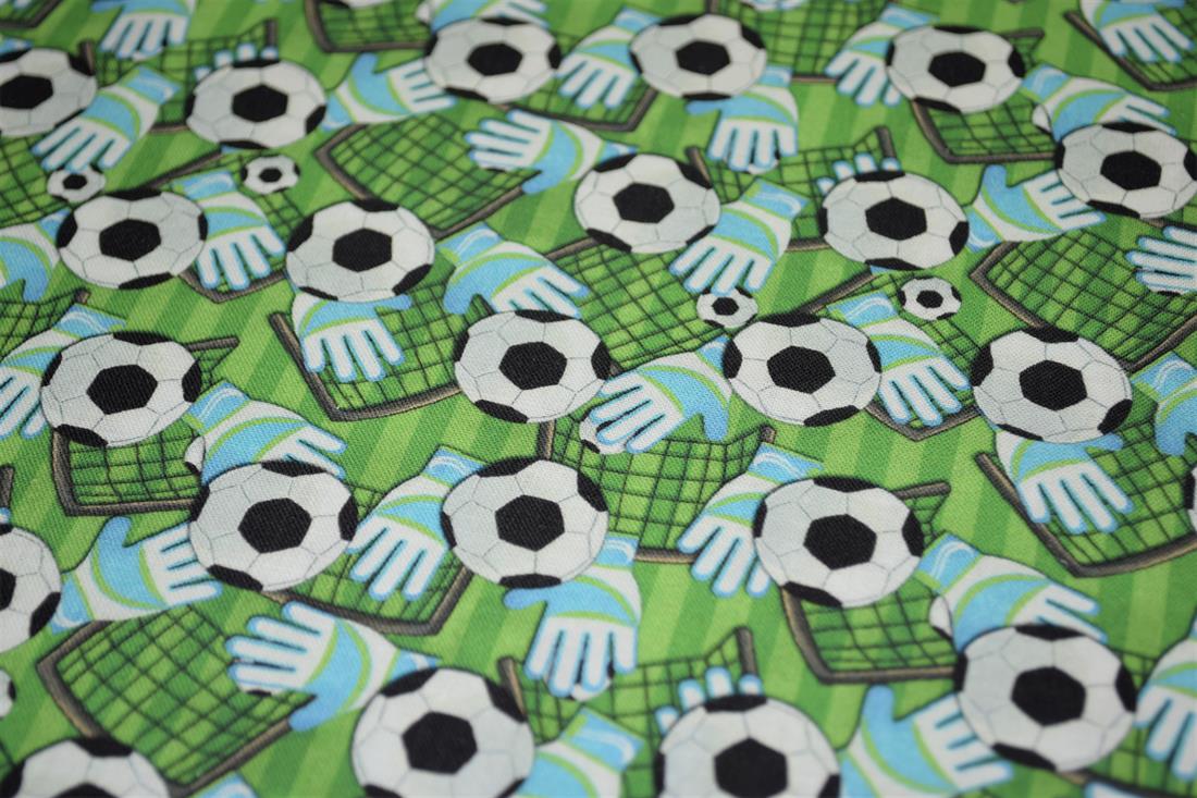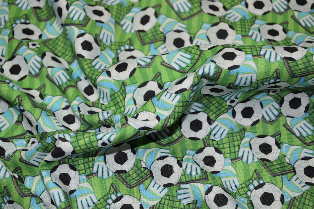 Premium Printed Craft 100% Cotton Football, goal and gloves Print Cotton Fabric, 148cm Wide, High QualityThis digital print fabric is ideal for dressmaking, quilting, patchwork, bunting, cushion-covers, and for other craft projects. Colours may slightly vary due to the lighting during the photo shooting or the monitor's display.