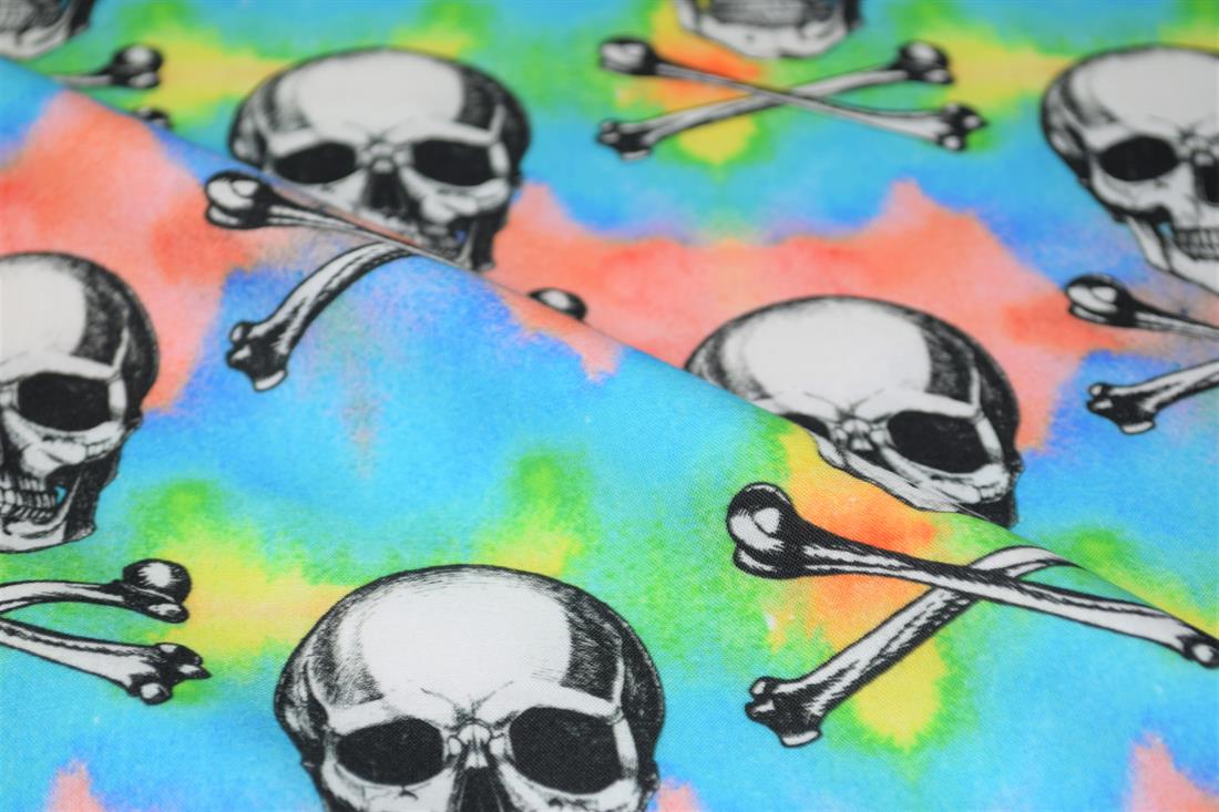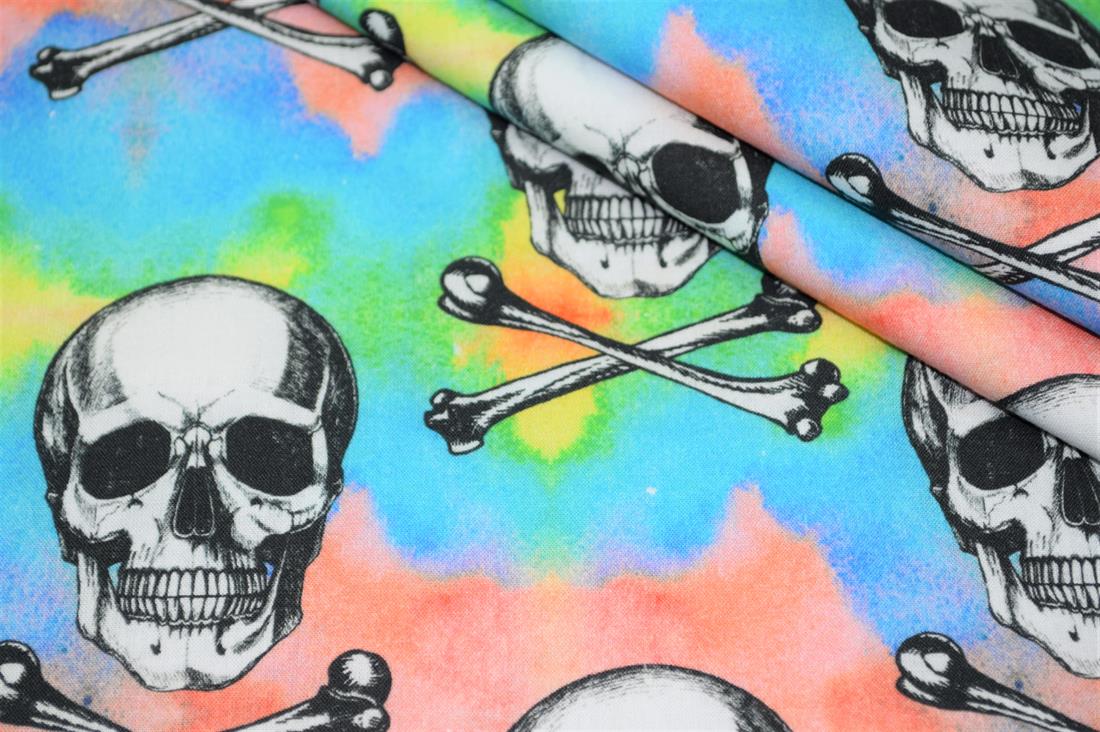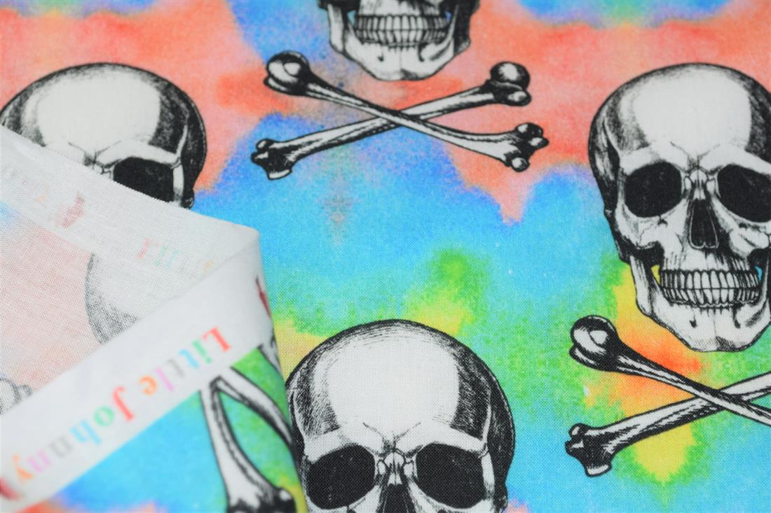 Little Johnny- Skulls 100% Cotton Fabric, 147cm Wide, High Quality; Weight; 115gsm This unique fabric is great for dressmaking, quilting, patchwork, bed sheets, pillow cases, curtains, face masks/coverings, and for craft projects. Colours may slightly vary due to the lighting during the photo shooting or the monitor's display.