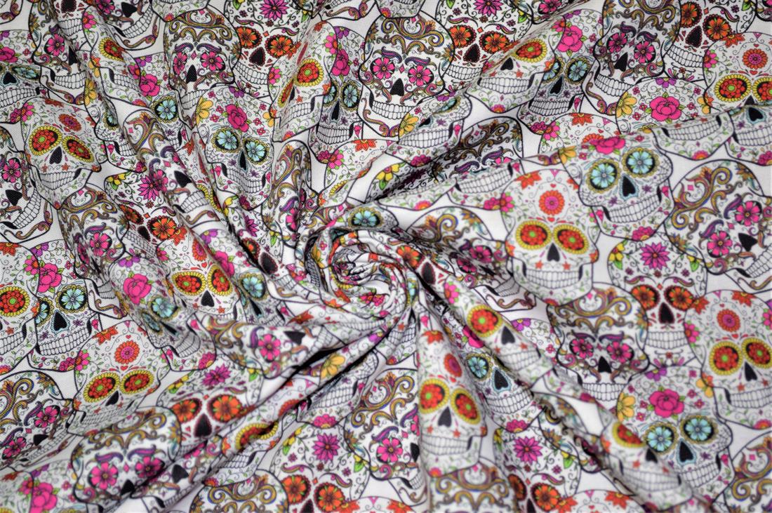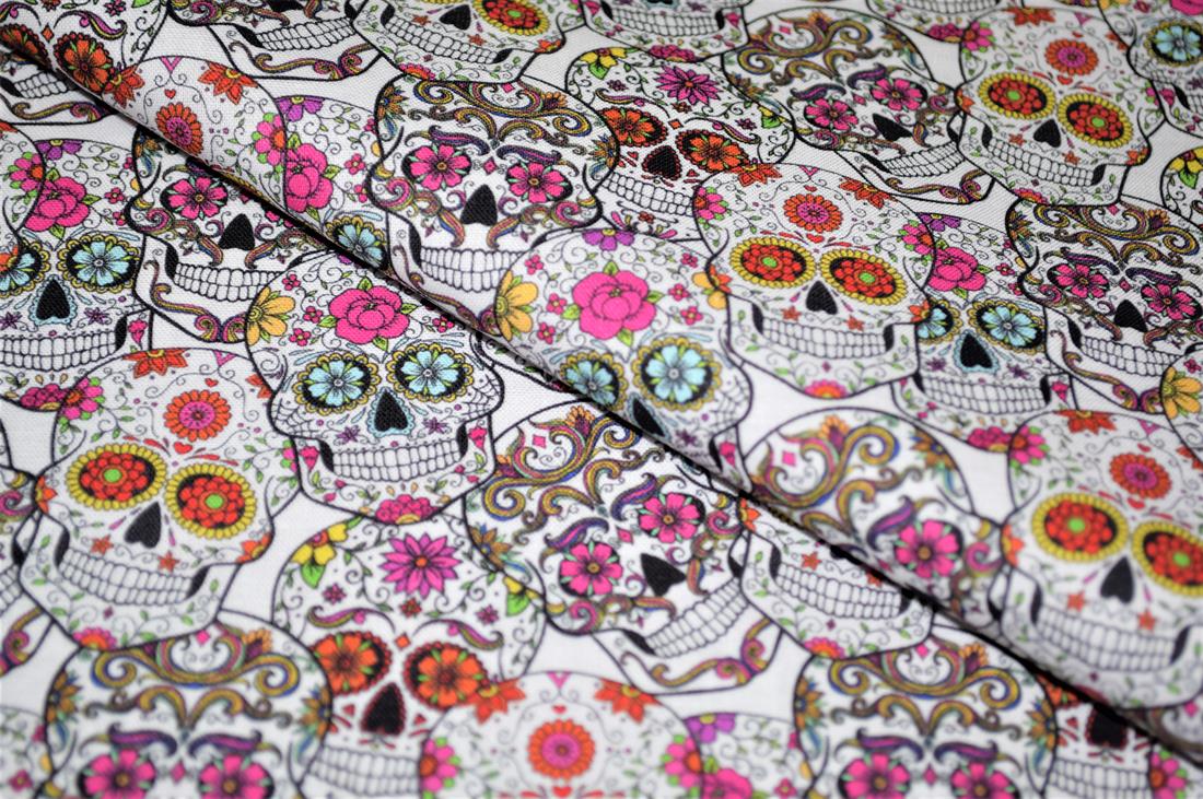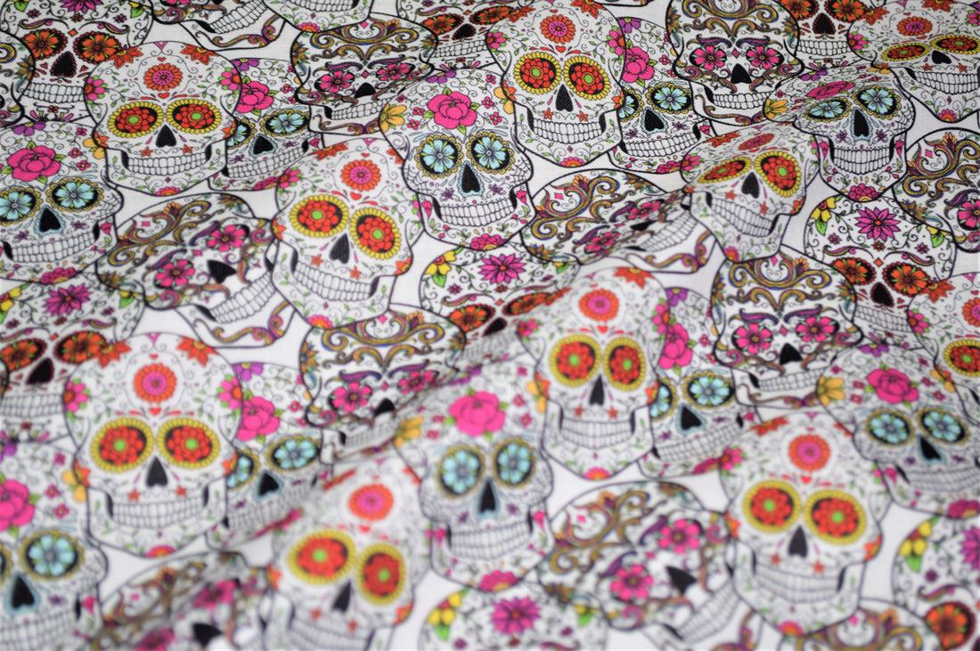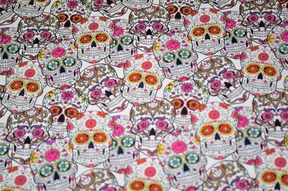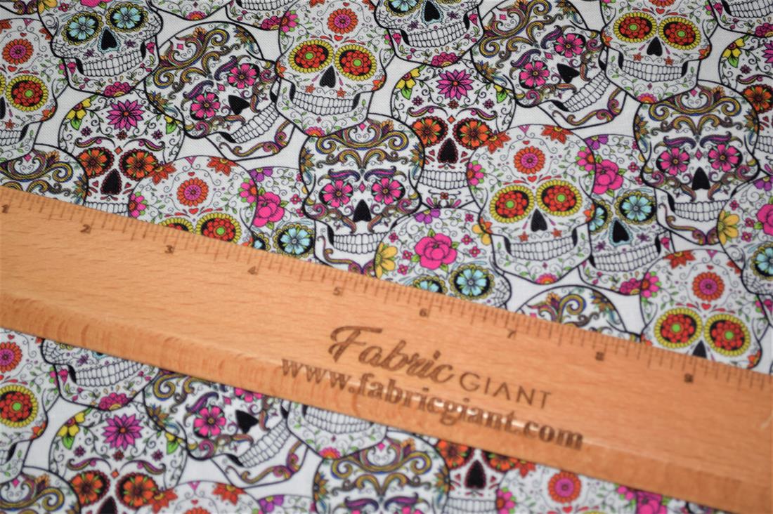 Premium Printed Craft 100% Cotton Skull Roses Print Cotton Fabric, 137cm Wide, High QualityThis digital print fabric is ideal for dressmaking, quilting, patchwork, bunting, cushion-covers, and for other craft projects. Colours may slightly vary due to the lighting during the photo shooting or the monitor's display
