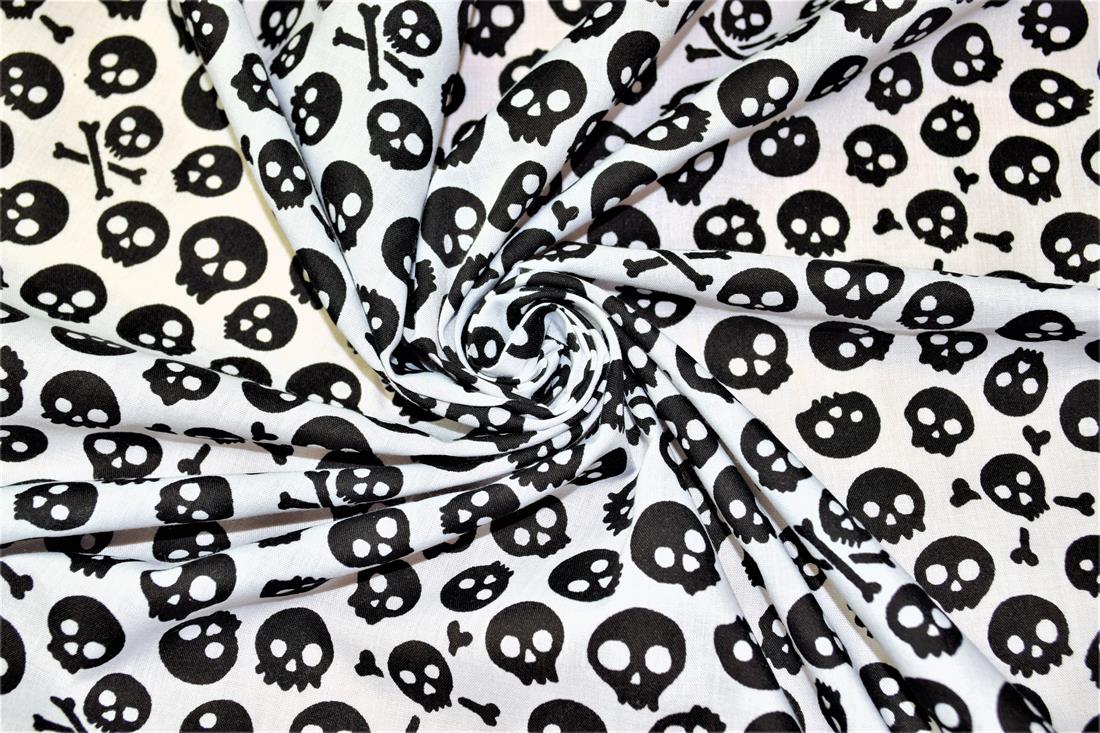 Premium Printed Poly Cotton Fabric, Skull Print 112cm Wide, High Quality;