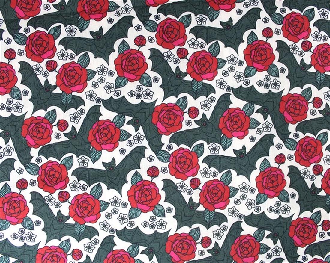 Halloween Polycotton Bats & Roses