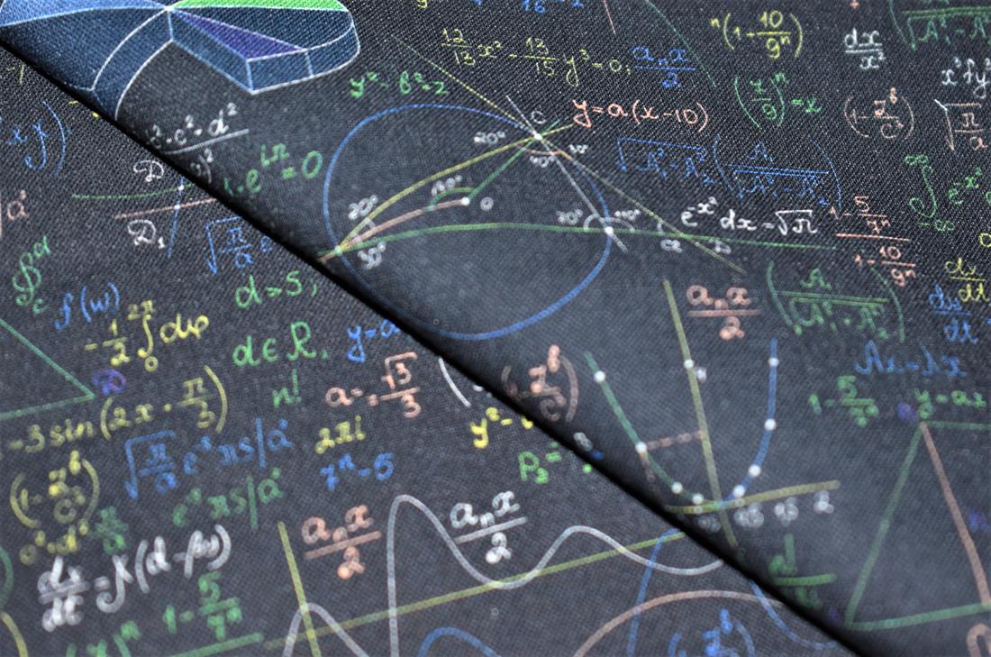 An intricate, design made up of equations and math graphics set against a chalkboard style background, perfect for back to school creations.