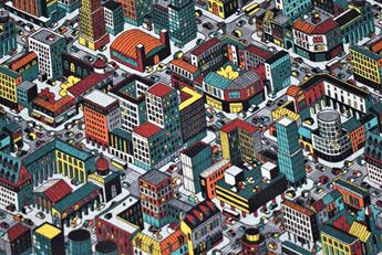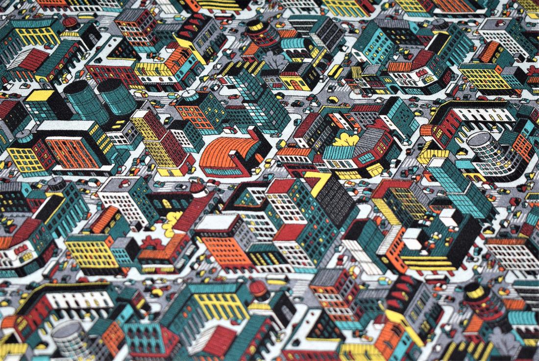 in stockLittle Johnny - Urban Gamer Cotton In the fabrics and crafts industry, cotton is an all-round favourite which is available in various textures and thickness. Its high tensile strength makes it strong, durable and less likely to rip or tear. It washes and dries easily and may be washed repeatedly as needed. This is a quality material for sewing, it is perfect for dressmaking, quilting, patchwork, bunting, cushion-covers. A retro gaming fabric that features a cityscape in urban colours from birds eye view. This fabric falls under the Urban adventure theme; inspired by young city explores, bold graphic, spray painted textures, neon colours, retro, gaming. Composition: 100% Cotton Weight: 155gsm Width: 150cm