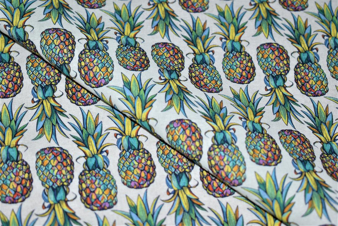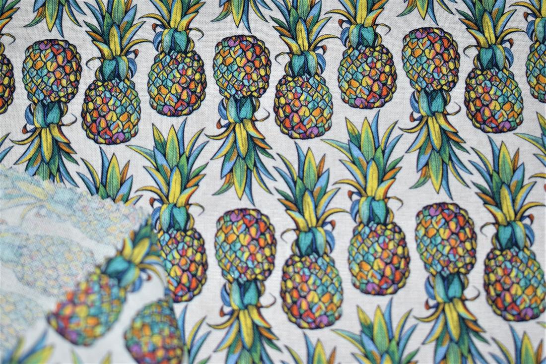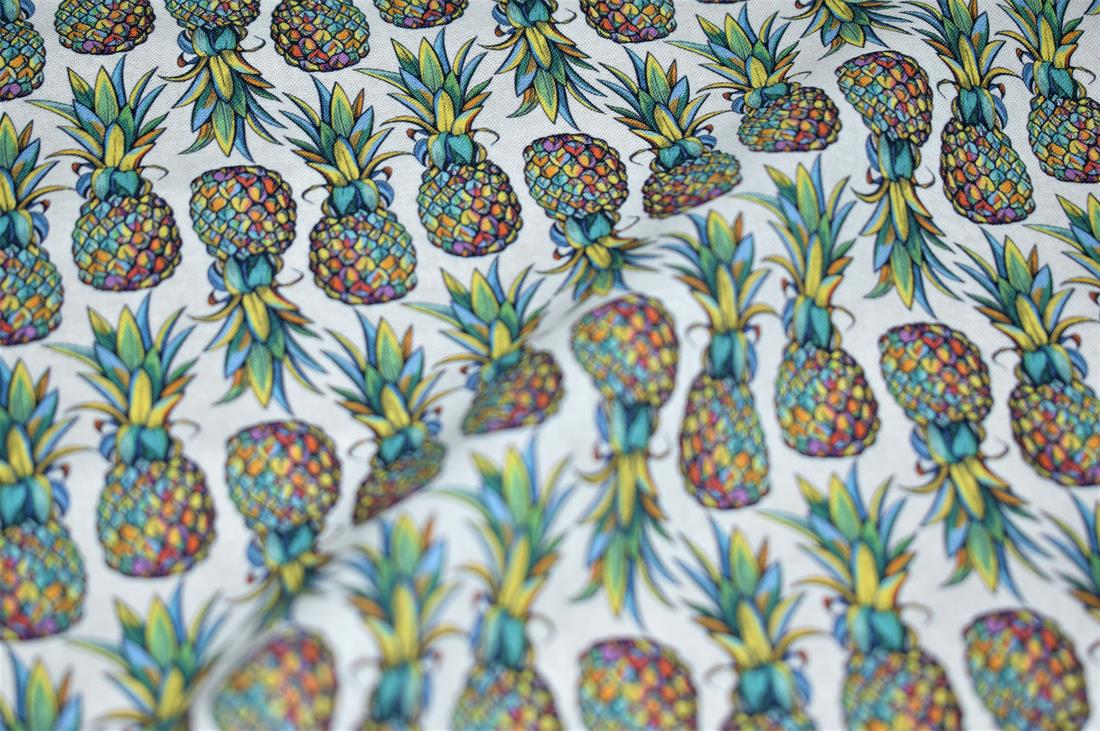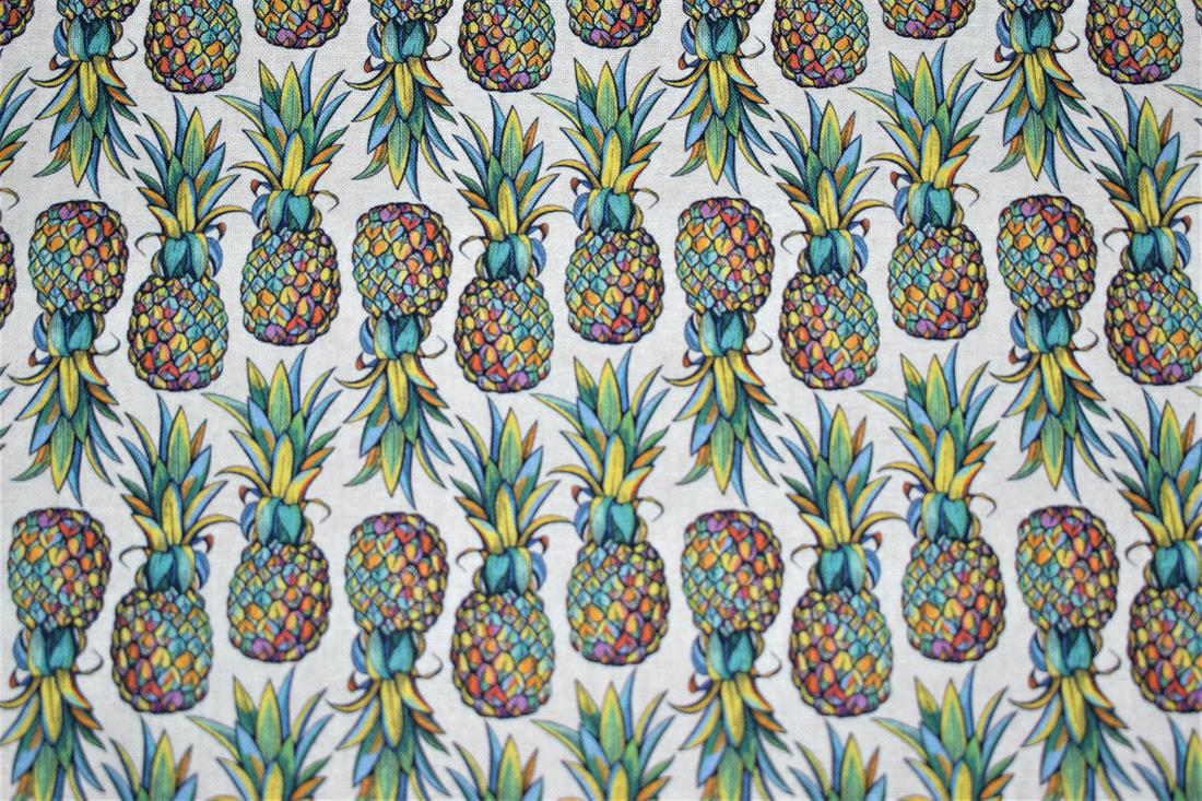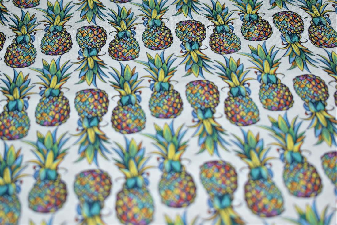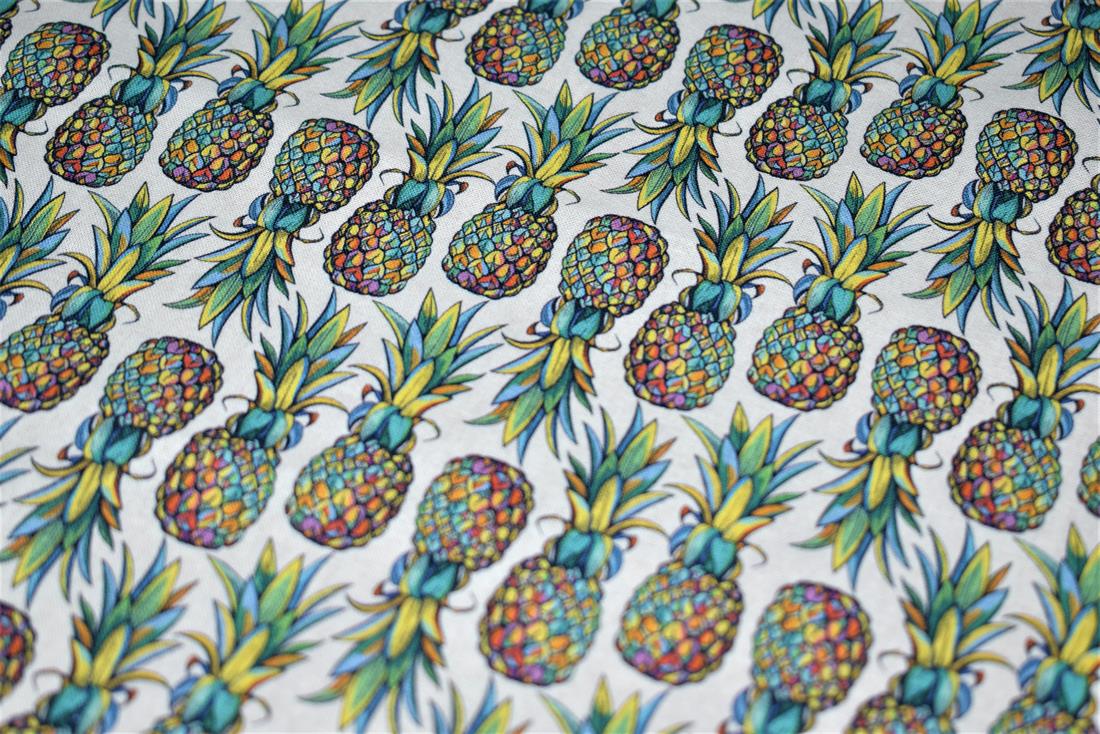 A tropical, rainbow, pineapple design that is creative and fun and set against a white background.