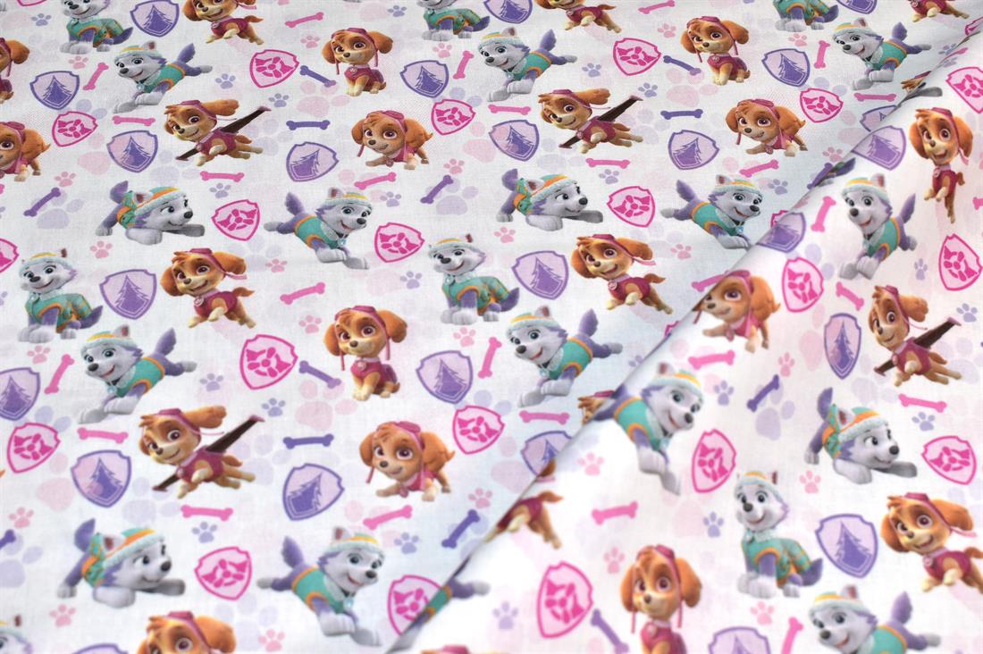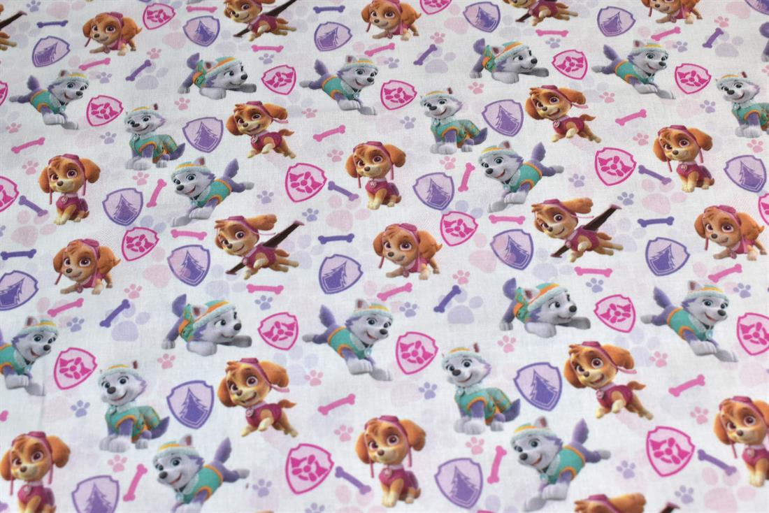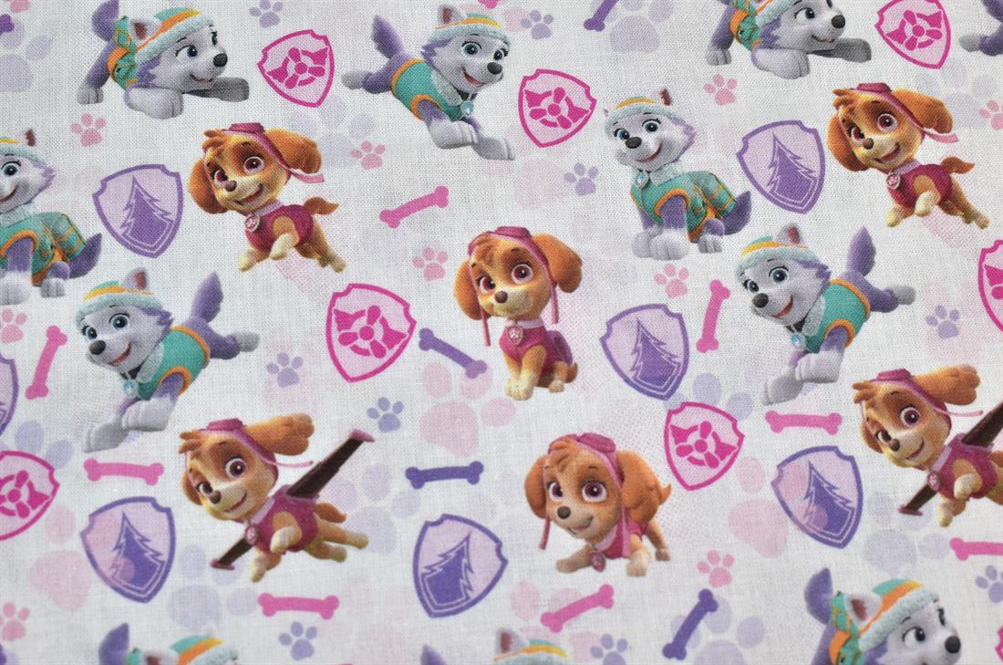 Little Johnny - Paw Patrol Girls Badges Cotton  -Premium Printed Craft 100% Cotton Print Cotton Fabric