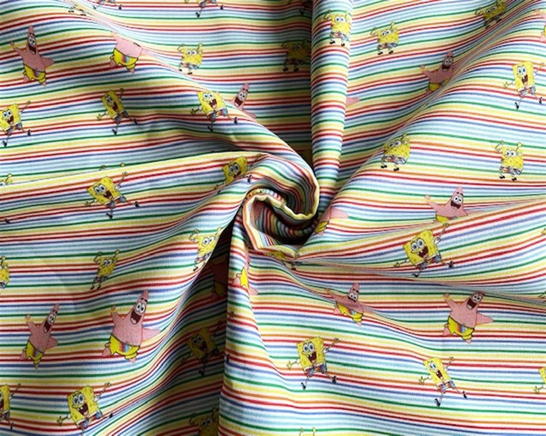 Premium Printed Sponge Bob Rainbow Stripe Cotton Digital 100% Cotton Print Cotton Fabric
