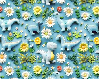 Little Johnny Dino 3D Premium Printed Craft 100% Cotton Fabric