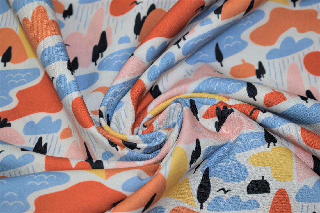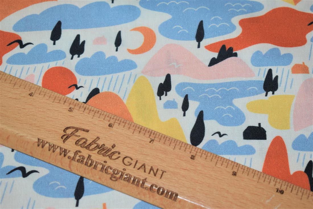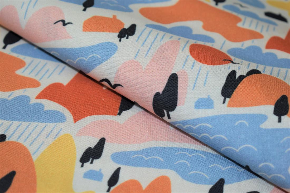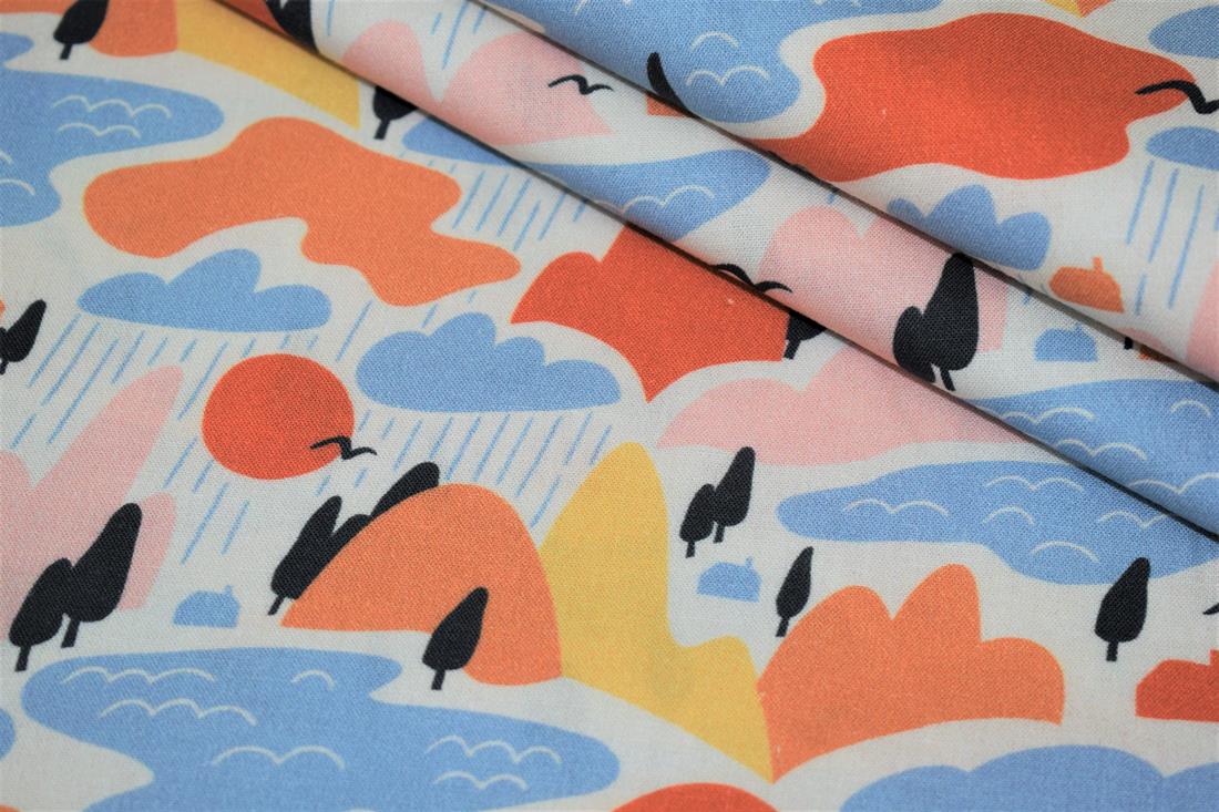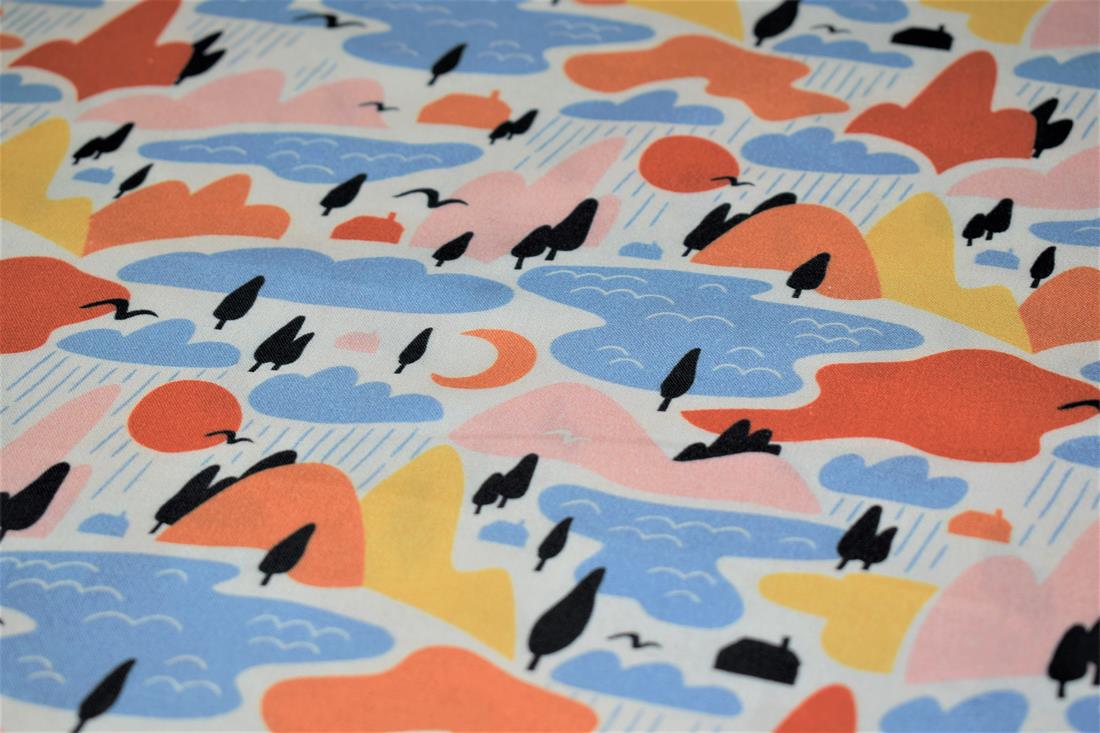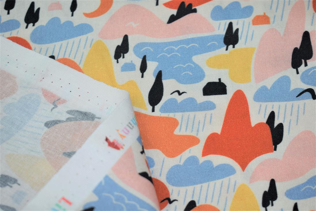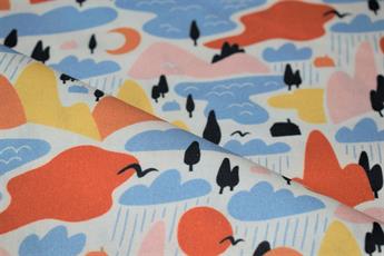 Little Johnny- Rainy Mountains Digital Print, 100% Cotton Fabric, 150cm Wide, High Quality; Weight; 115GSM This rainy pattern fabric is perfect for dressmaking, quilting, patchwork, bunting, cushion-covers, and for craft projects. Colours may slightly vary due to the lighting during the photo shooting or the monitor's display.
