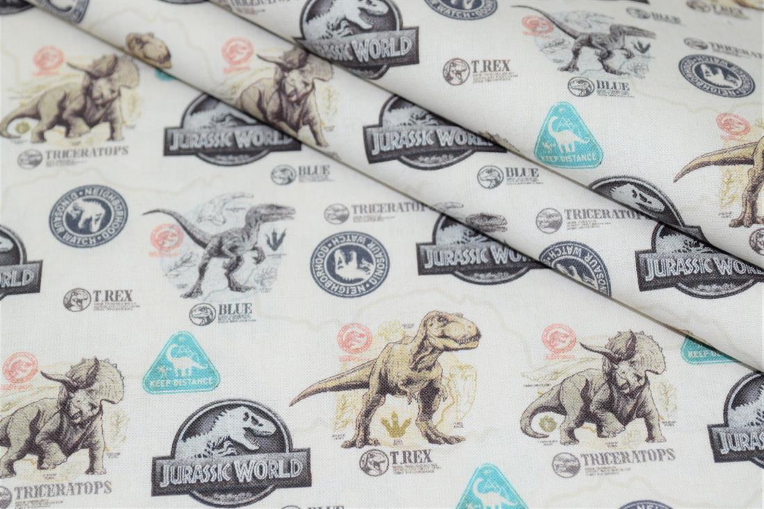 Little Johnny- Jurassic World Badge 100% Cotton Fabric, 147cm Wide, High Quality; Weight; 115gsm