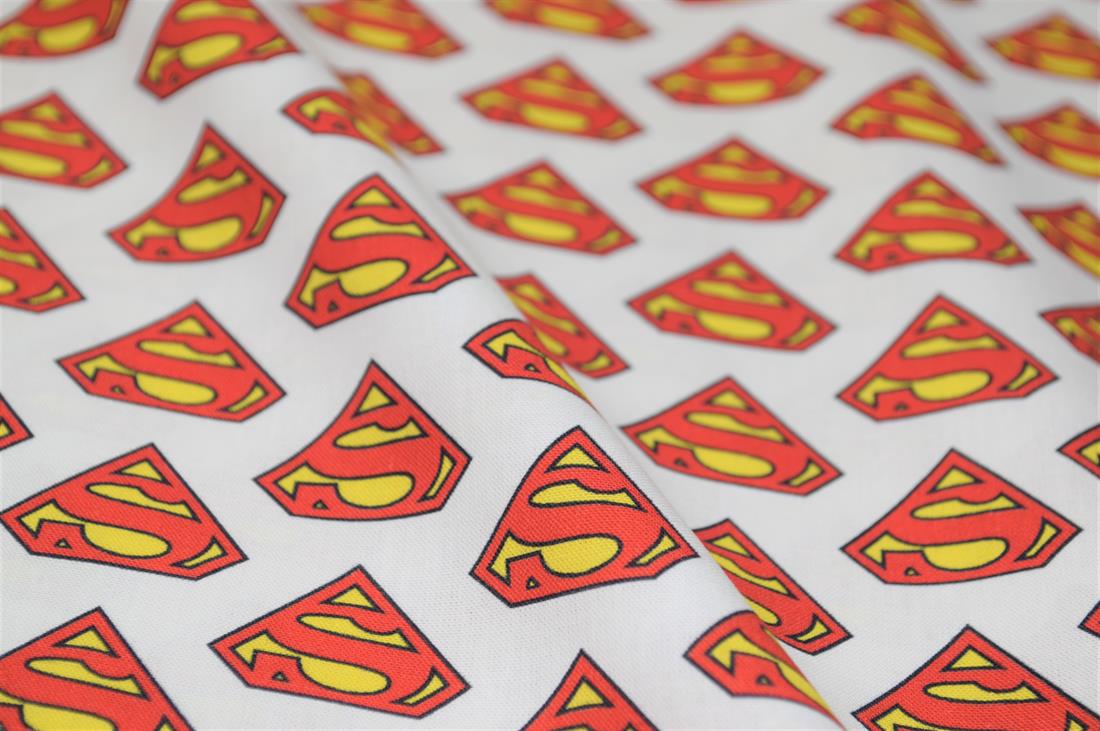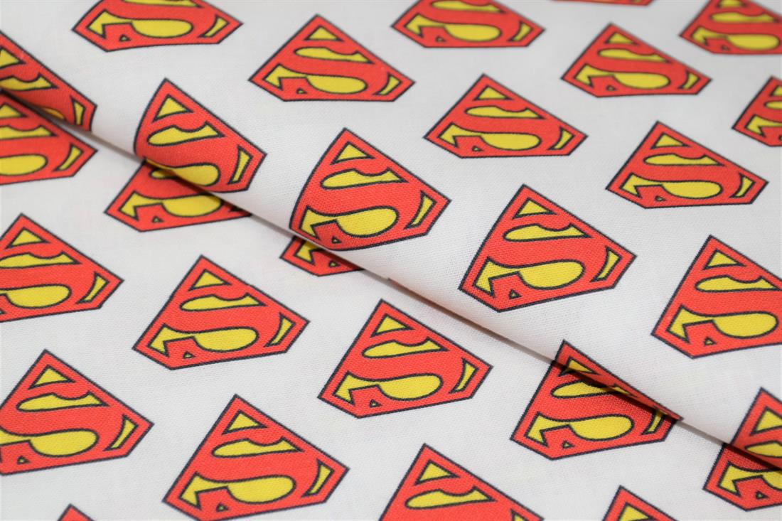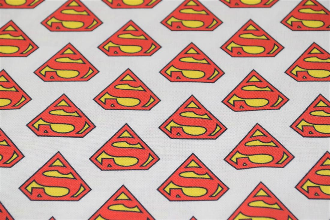 Little Johnny- Superman Classic Badge 100% Cotton Fabric, 147cm Wide, High Quality; Weight; 115gsm