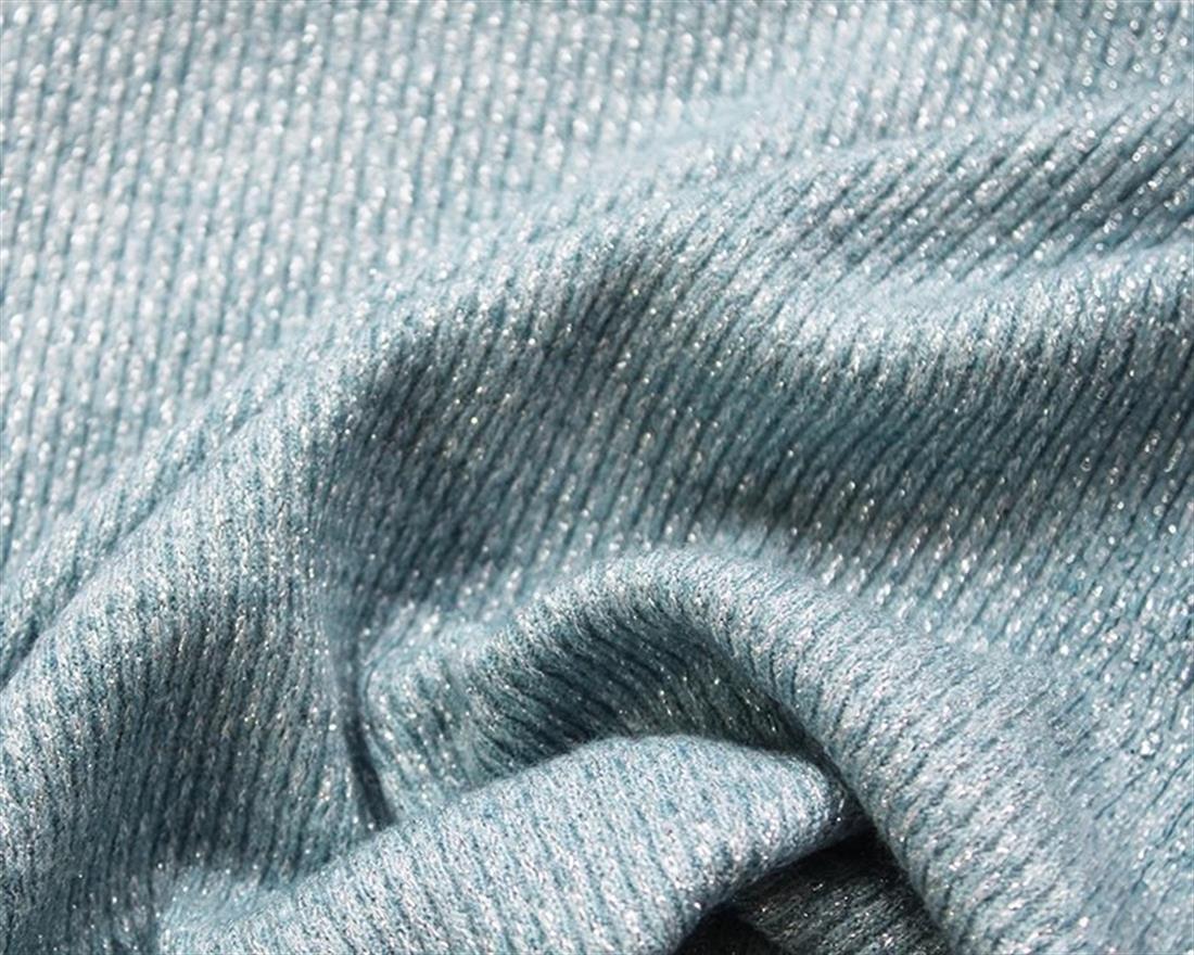 Silver Lurex Knit is a soft, stretchy fabric with shiny silver threads woven in.