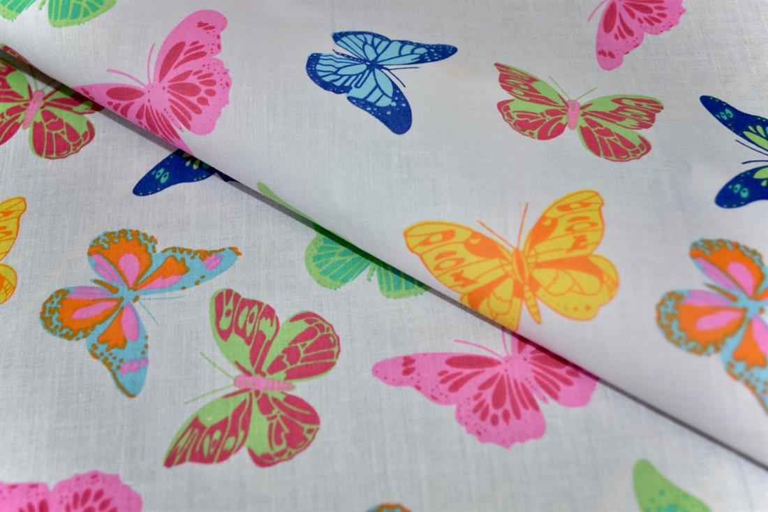 Printed polyCotton Fabric Butterfly print design, 112cm Wide, High Quality; This lightweight fabric is great for dressmaking, quilting, patchwork, bed sheets, pillow cases, curtains, face masks/coverings, and for craft projects. Colours may slightly vary due to the lighting during the photo shooting or the monitor's display.