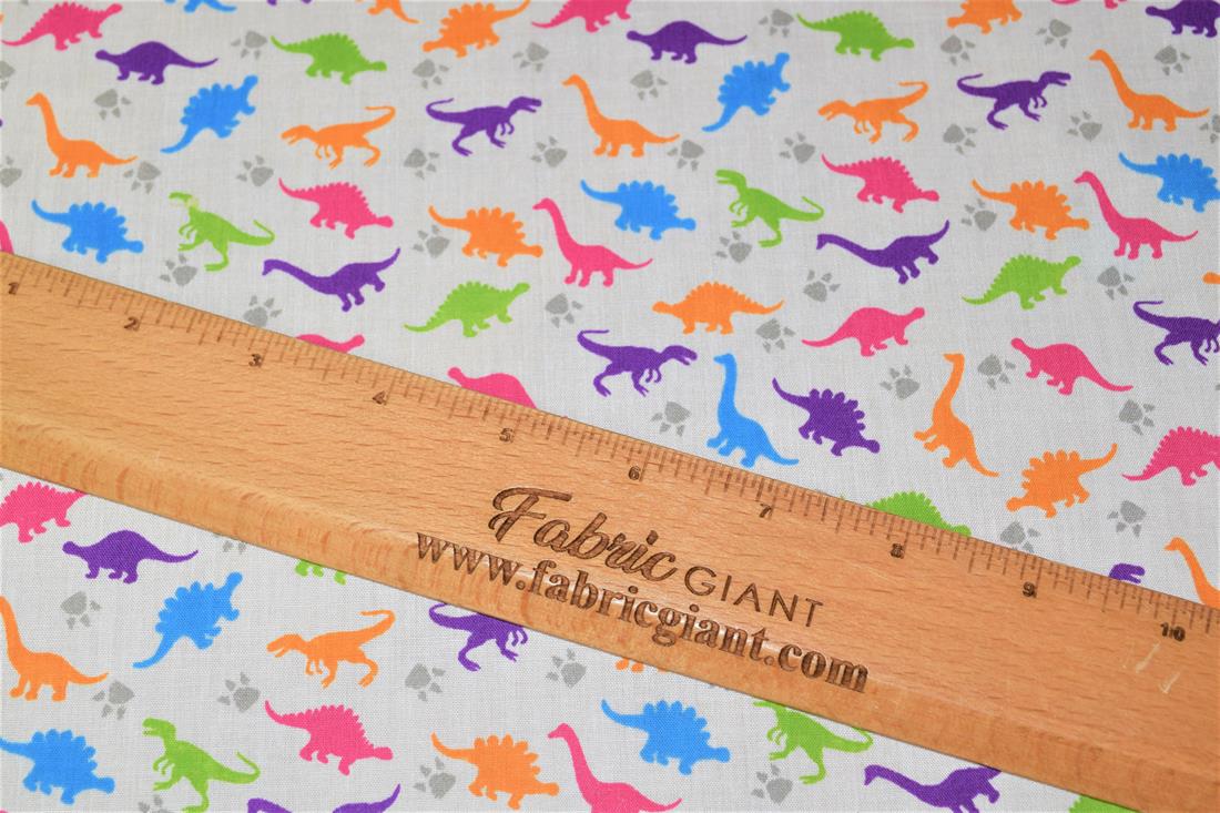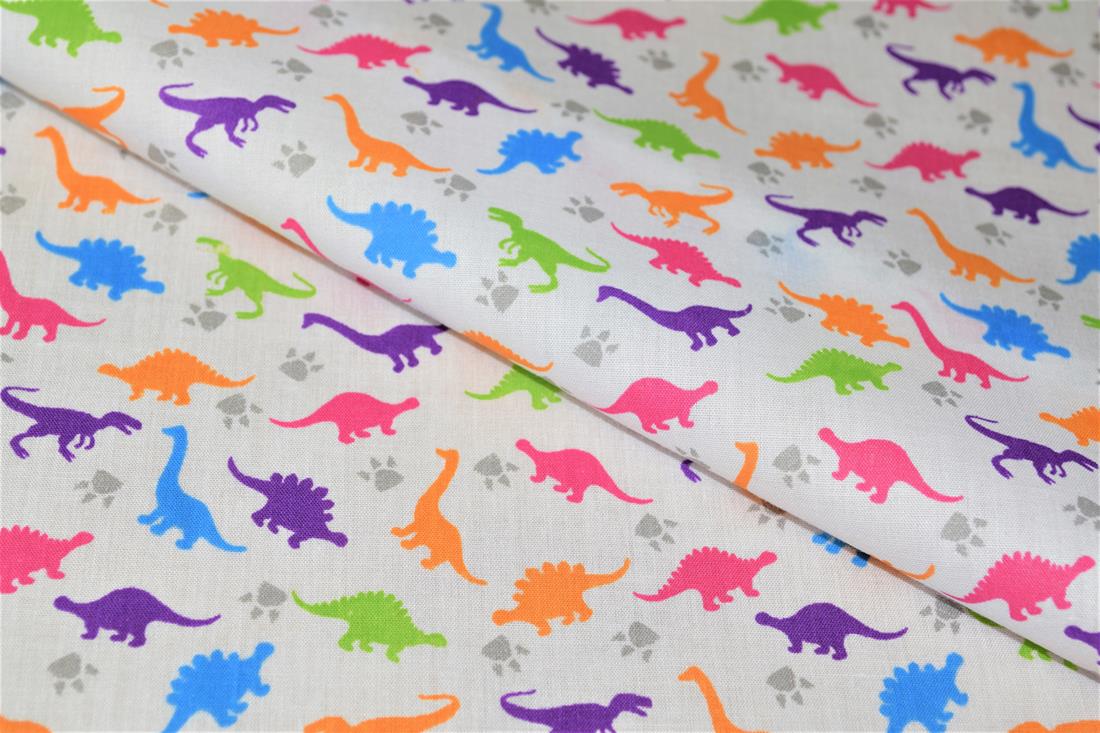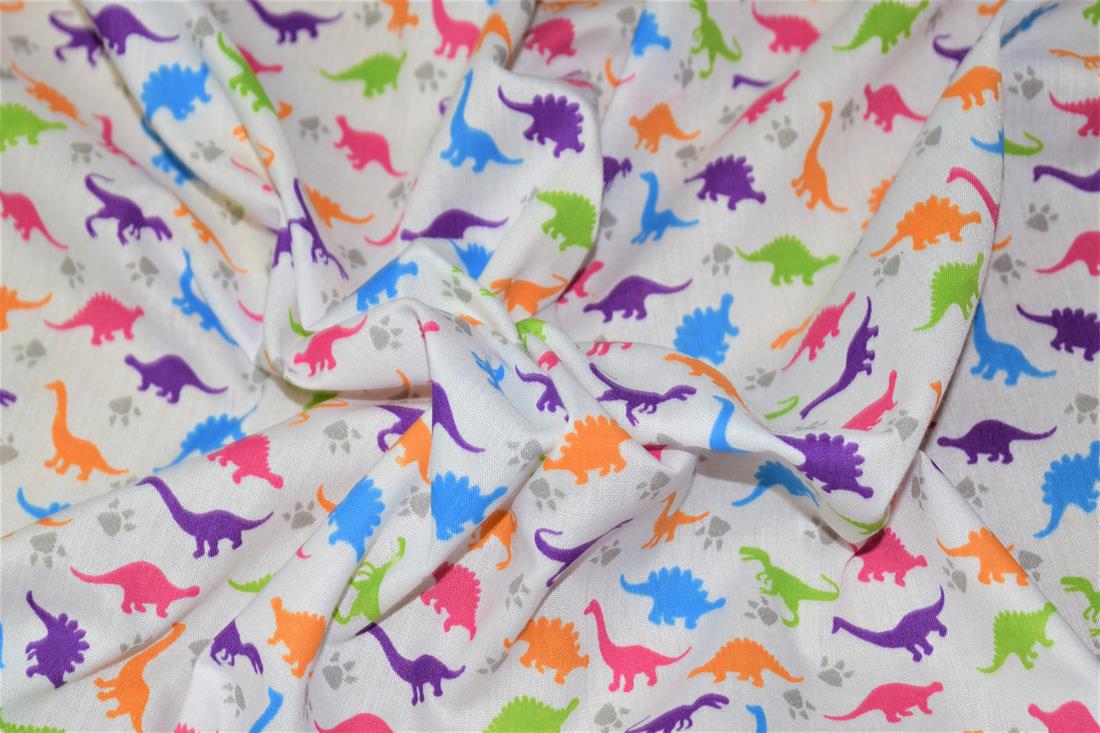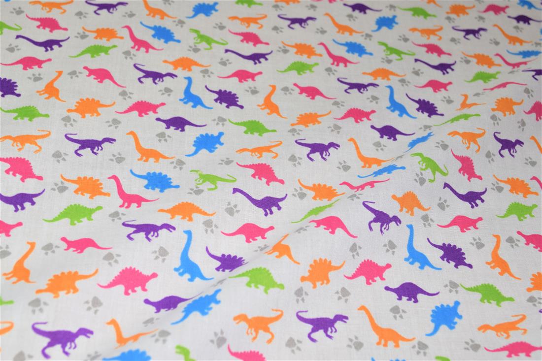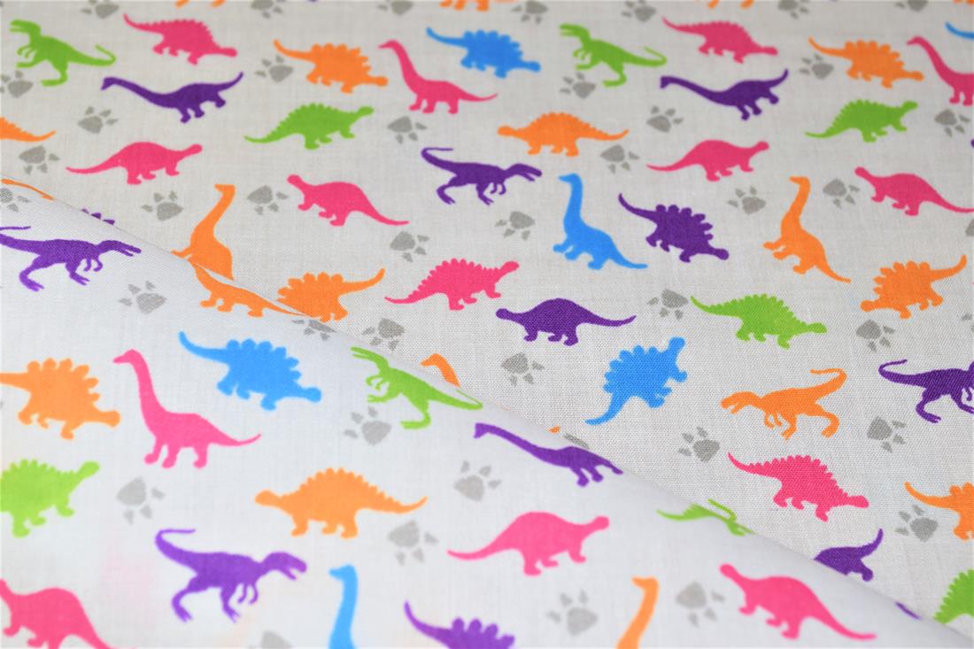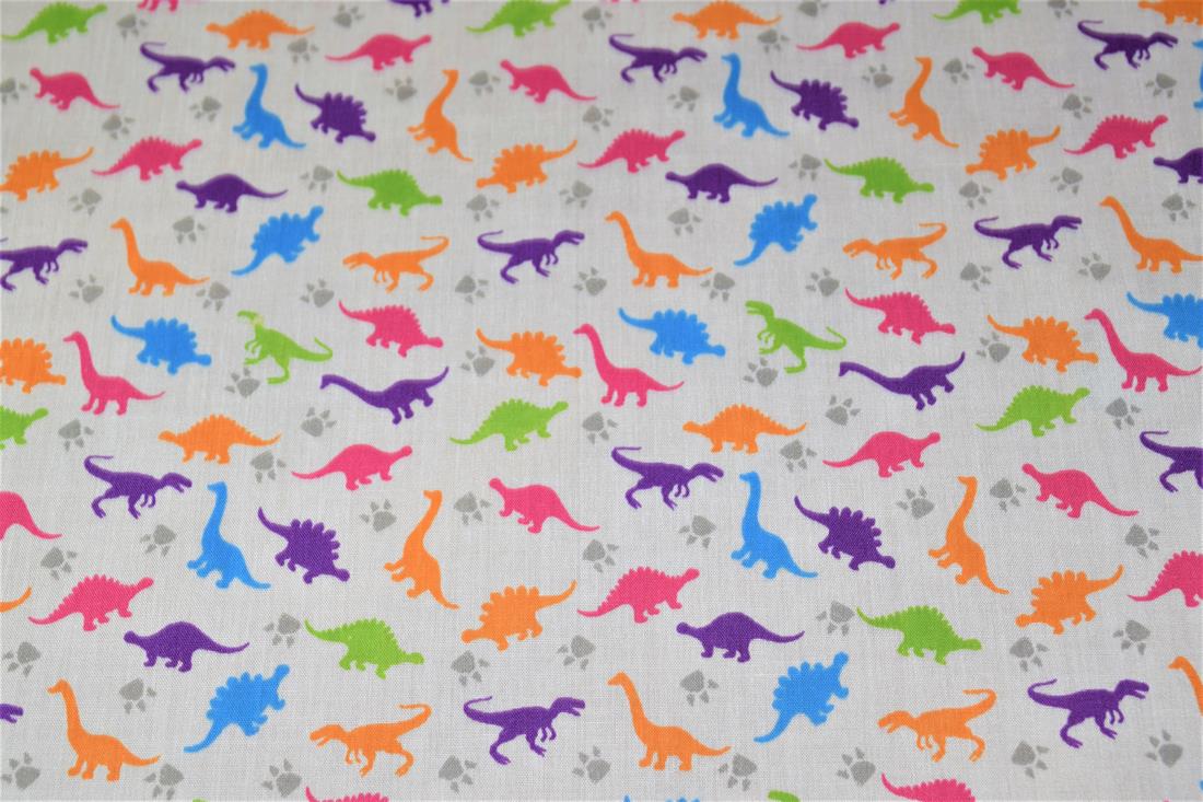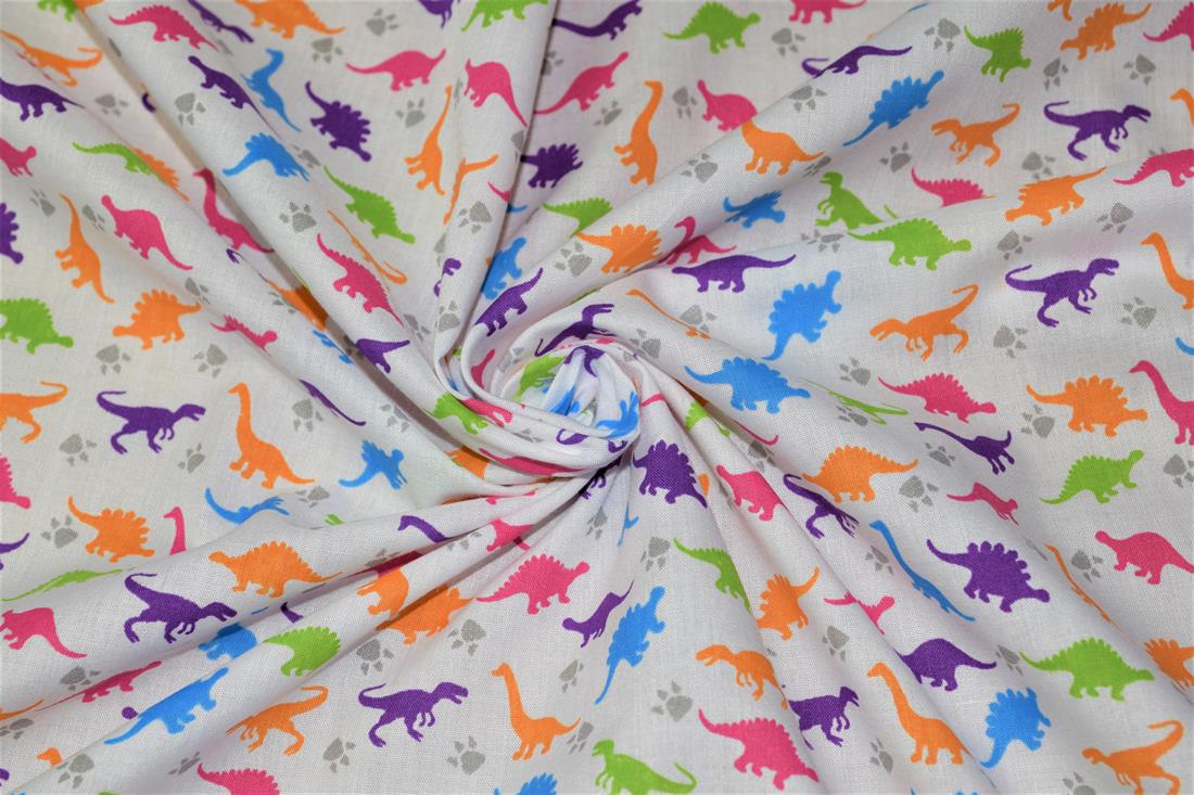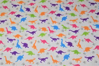 Premium Printed Poly Cotton Fabric, Dinosaur Print