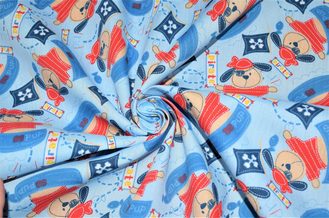 Printed Polycotton Fabric Pup Print Desing 80% Polyester and 20% Cotton, 112cm Wide, High Quality; Weight; 90gsm Our polycotton prints are made from a blend of polyester and cotton. This lightweight fabric is ideal for clothing, cushion-covers, bed sheets, tablecloths, napkins, face masks, crafts, and much more. Colours may slightly vary due to the lighting during the photo shooting or the monitor's display.