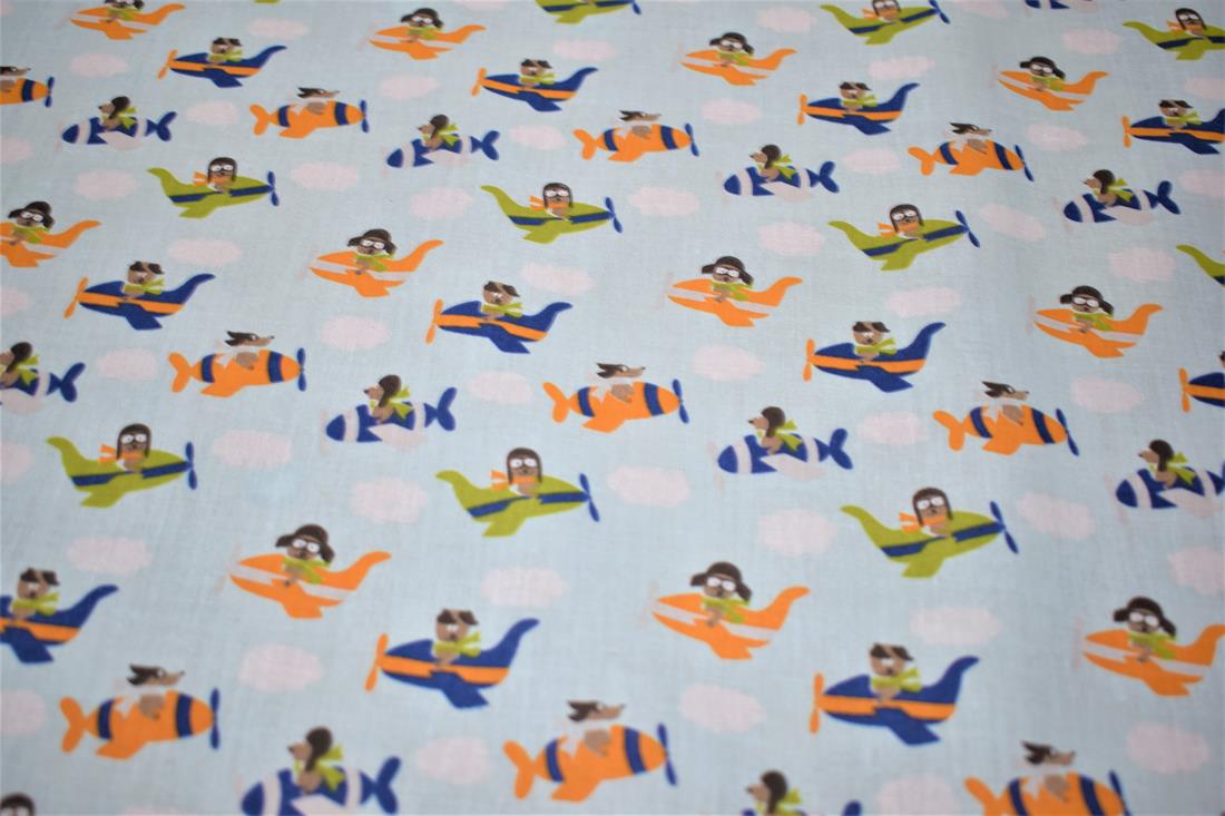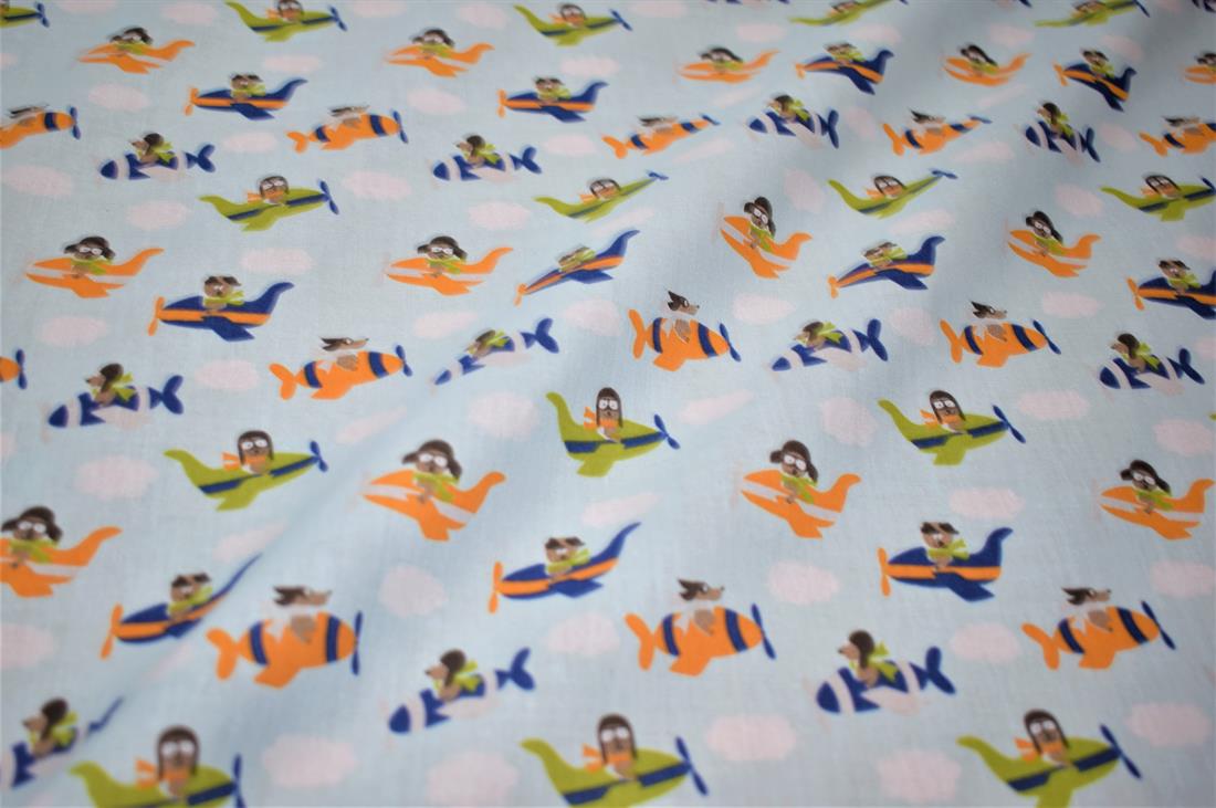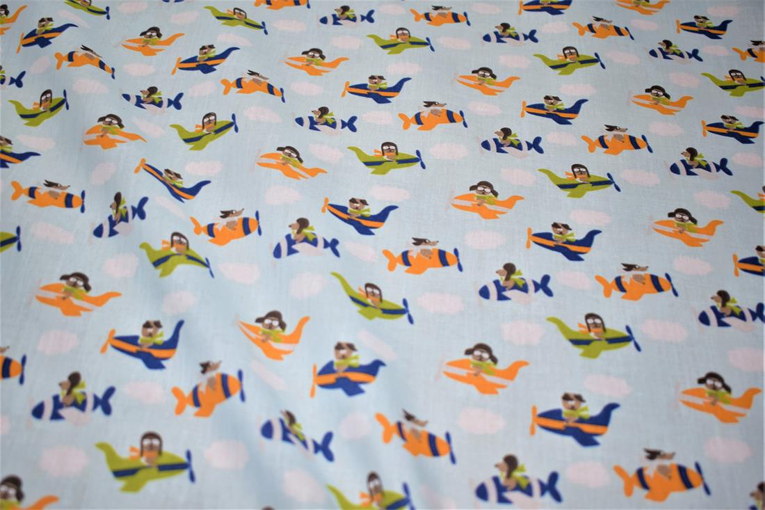 Aeroplane - Printed Polycotton Fabric 80% Polyester and 20% Cotton, Hight Quality Our polycotton prints are made from a blend of polyester and cotton. This lovely fabric is lightweight fabric is ideal for clothing, cushion-covers, bed sheets, tablecloths, napkins, face masks, crafts, and much more. Colours may slightly vary due to the lighting during the photo shooting or the monitor's display. Width: 112cm / 44" Weight; 95gsm Washing - 30 degrees celsius