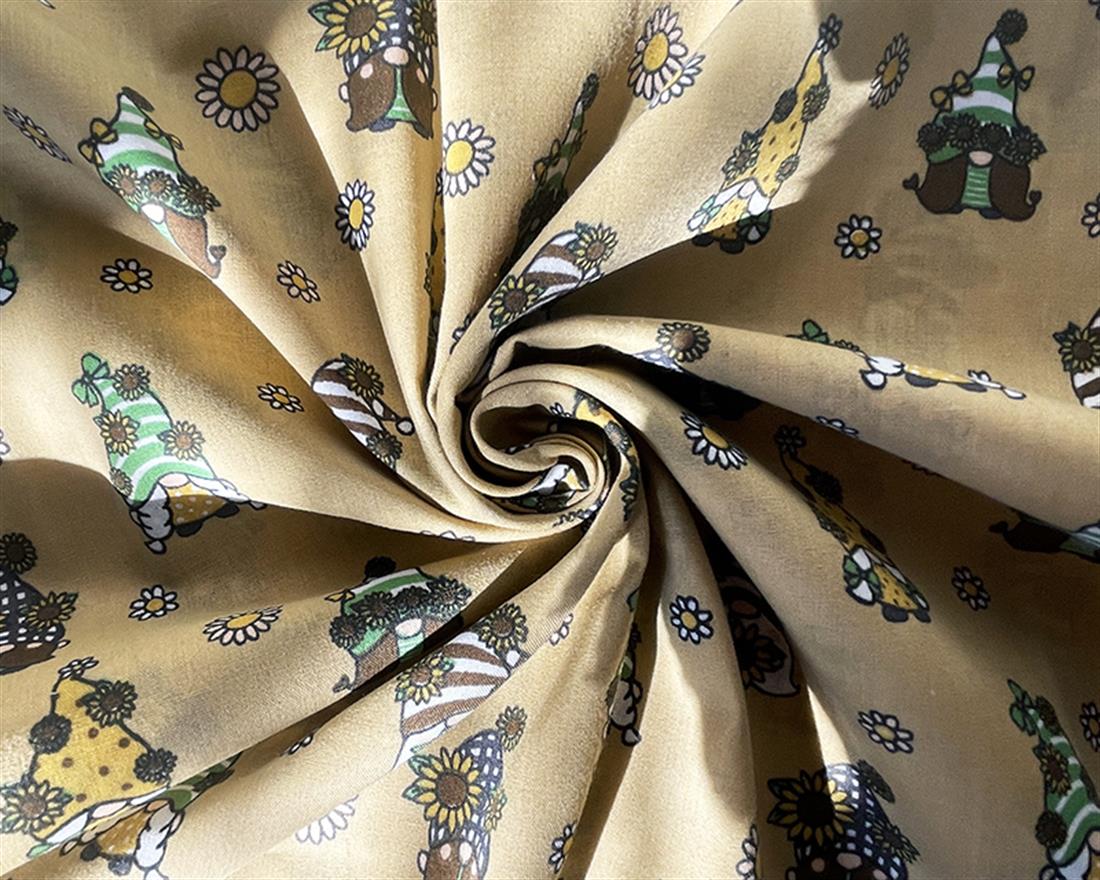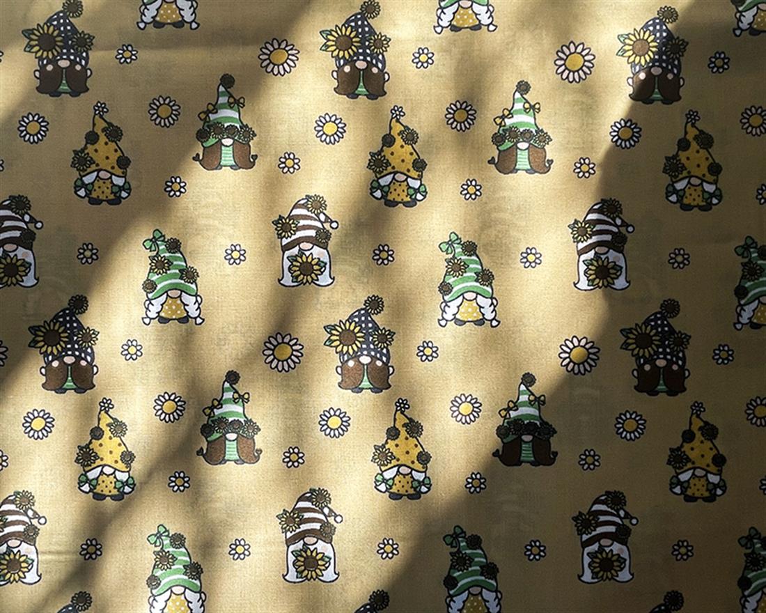 Featuring a fun quirky, spring time Gonk design. Reminiscent of asterix characters, these adorable little, hippy gnomes are adorned with sunflowers and other floral elements. A perfect spring fabric that comes in three on trend colourways.