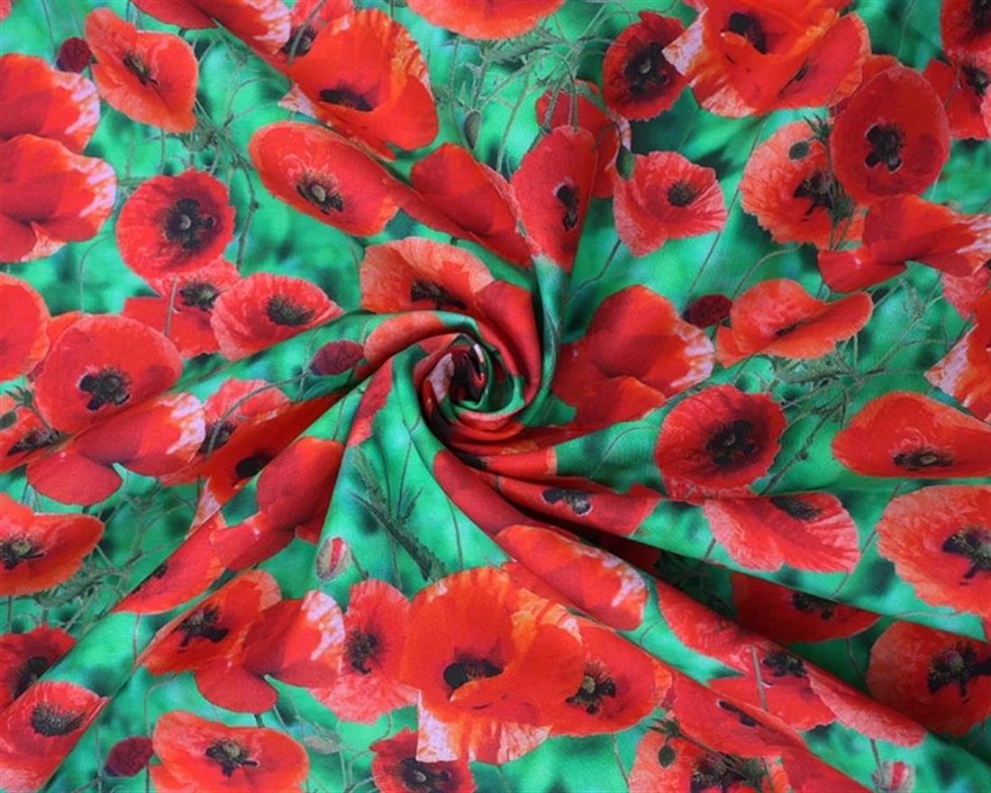 Premium Printed Poppy Leaves Digital 100% Cotton Print Cotton Fabric