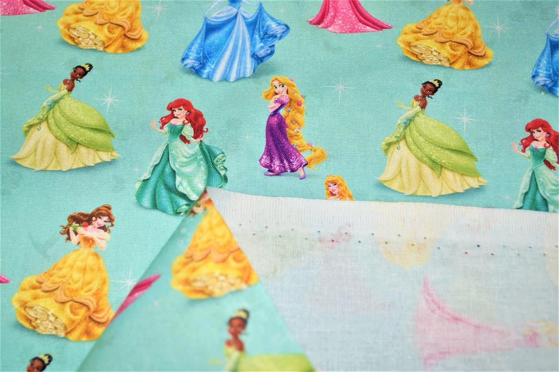 Digital Printed 100% Cotton, Disney Princess' Print, 135cm Wide, High Quality; Weight; 150gsm This lovely fabric is great for dressmaking, quilting, patchwork, bed sheets, pillow cases, curtains, face masks/coverings, and for craft projects. Colours may slightly vary due to the lighting during the photo shooting or the monitor's display. Wash at 30degree.