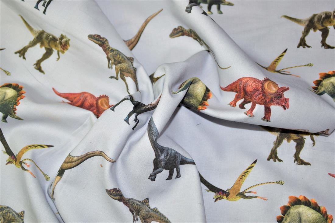 Digital Printed 100% Cotton, Dinosaur Print, 135cm Wide, High Quality; Weight; 150gsm This lovely fabric is great for dressmaking, quilting, patchwork, bed sheets, pillow cases, curtains, face masks/coverings, and for craft projects. Colours may slightly vary due to the lighting during the photo shooting or the monitor's display. Wash at 30degree.